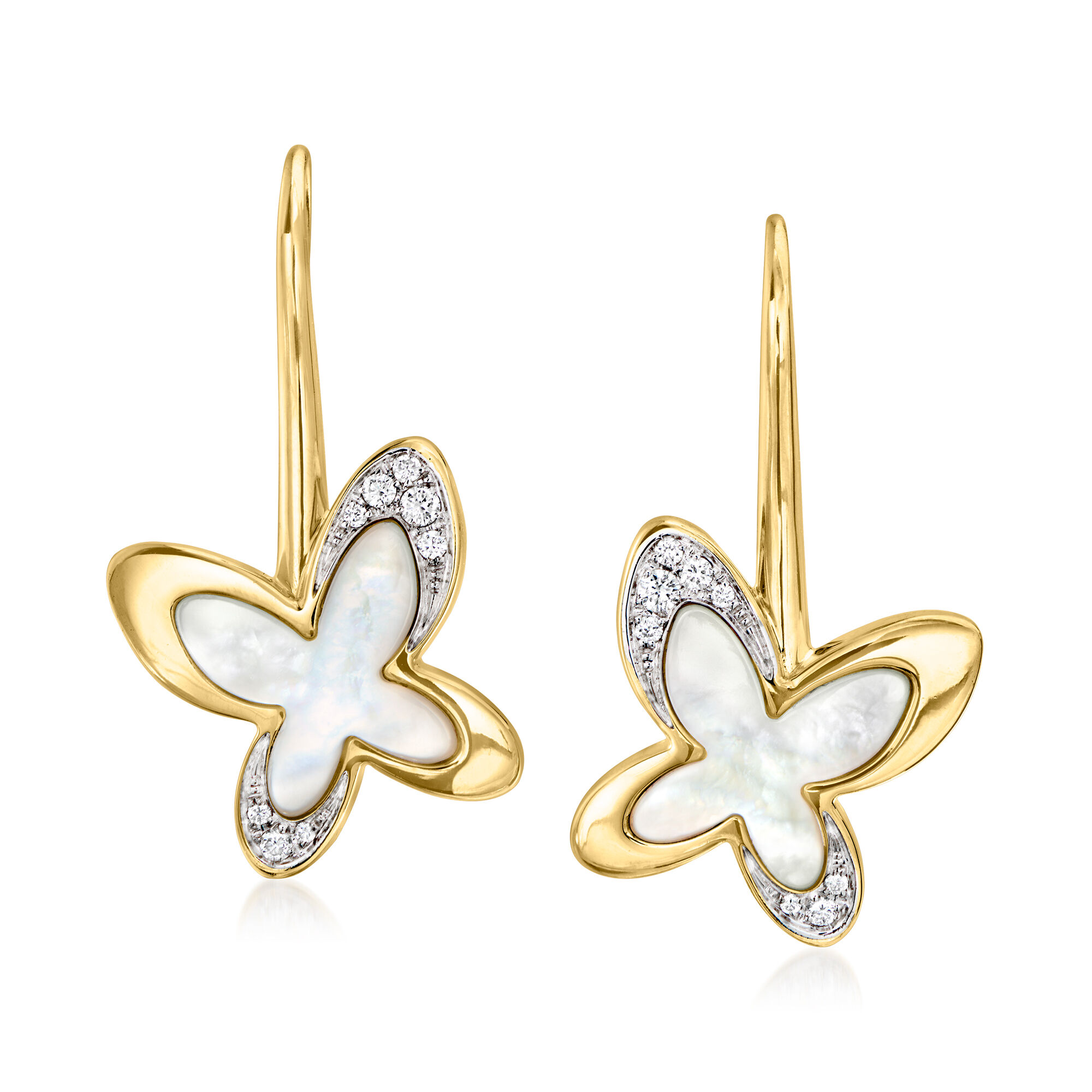C. 1990 Vintage Mimi Milano Mother-of-Pearl Butterfly Drop Earrings with .15 ct. t.w. Diamonds in 18kt Yellow Gold