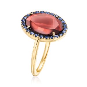 C. 2000 Vintage 3.60 Carat Garnet Ring with .50 ct. t.w. Sapphires in 18kt Yellow Gold. Size 7