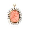 C. 1930 Vintage Coral Cameo Pin/Pendant with 2mm Cultured Pearls in 14kt Yellow Gold