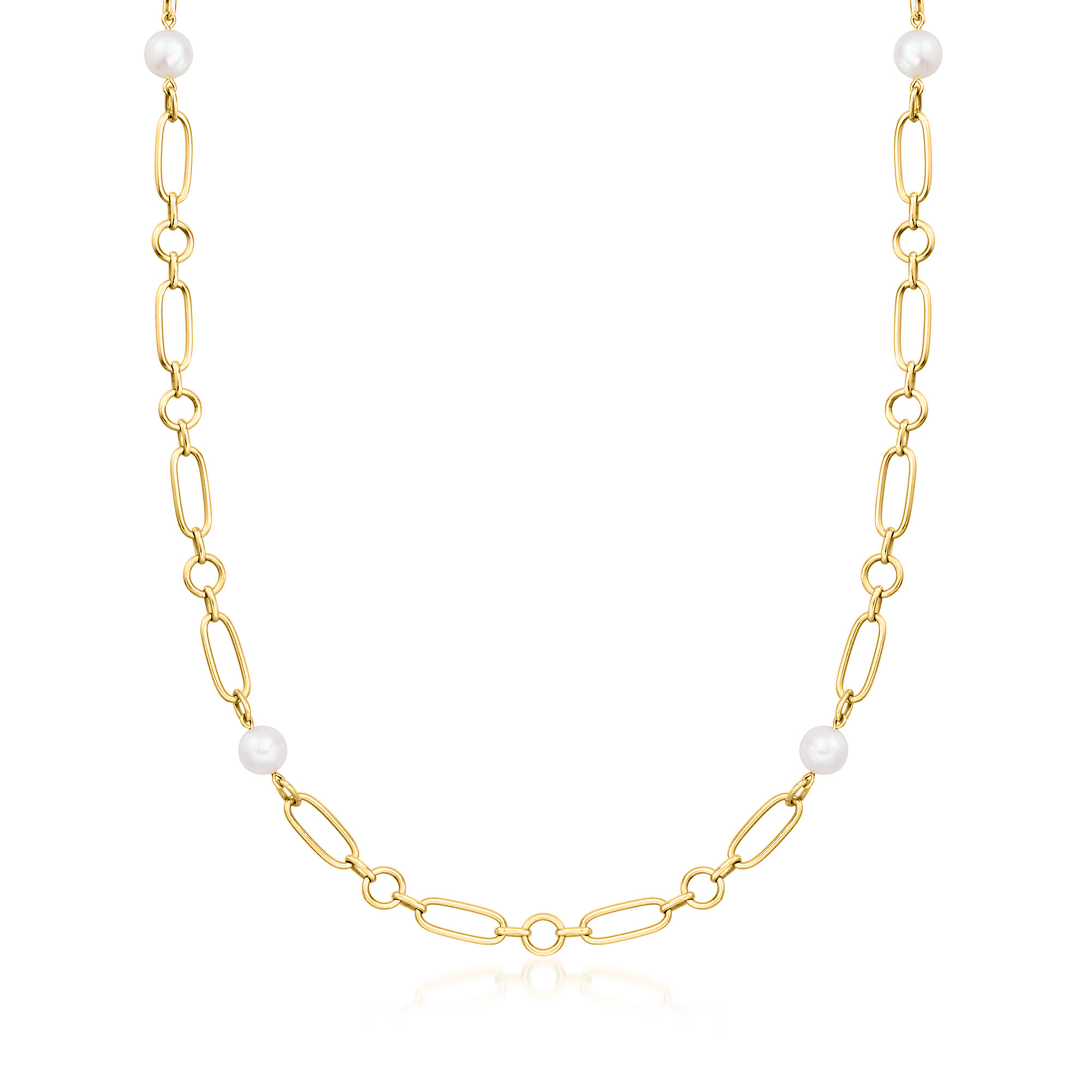 C. 2000 Vintage Mikimoto 6.5mm Cultured Pearl Paper Clip Link Necklace in 18kt Yellow Gold. 24″