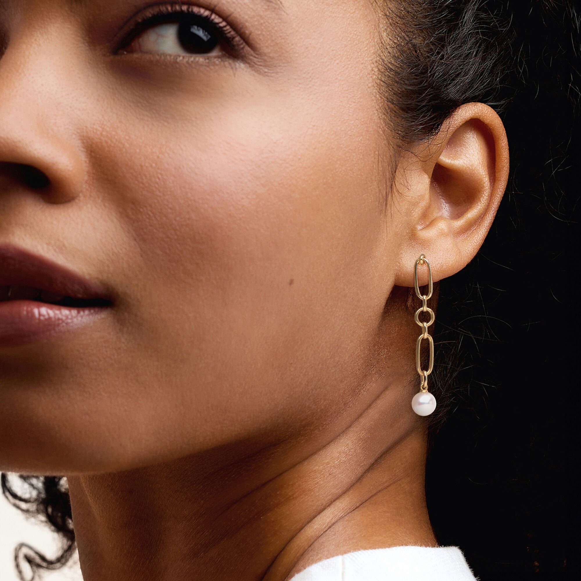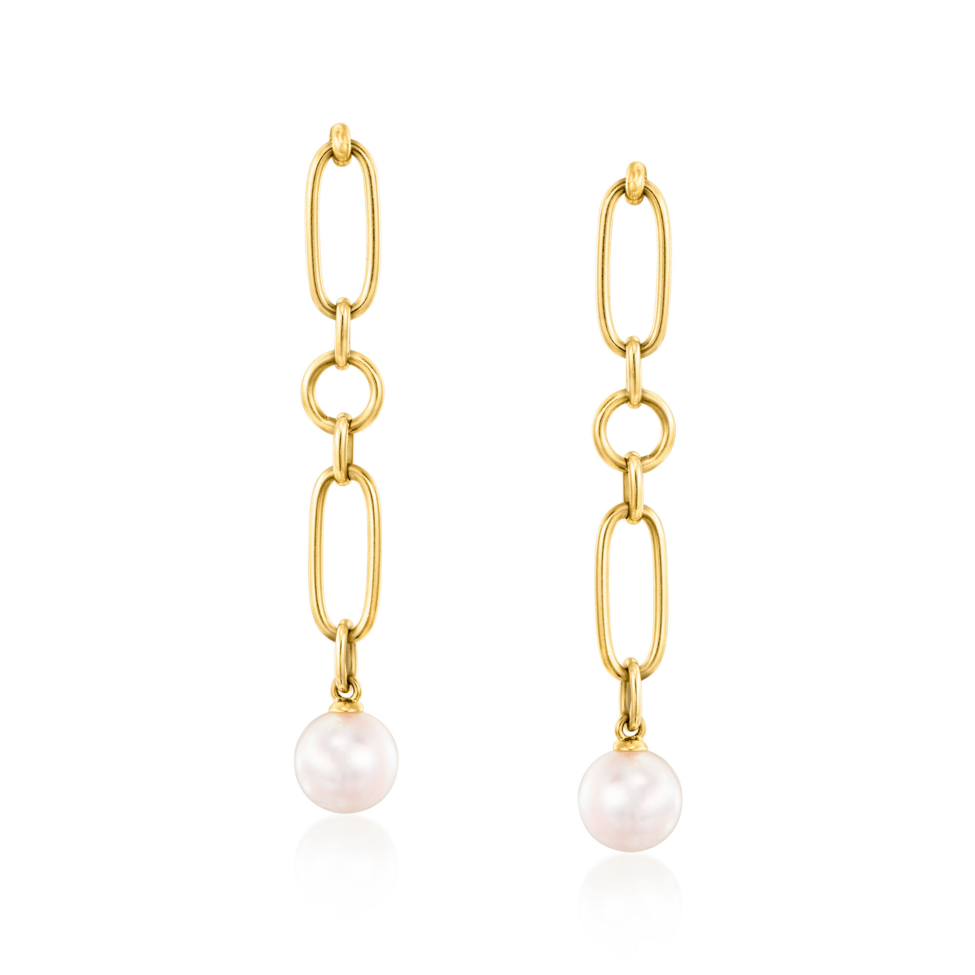 C. 2000 Vintage Mikimoto 7.2mm Cultured Pearl Paper Clip Link Drop Earrings in 18kt Yellow Gold