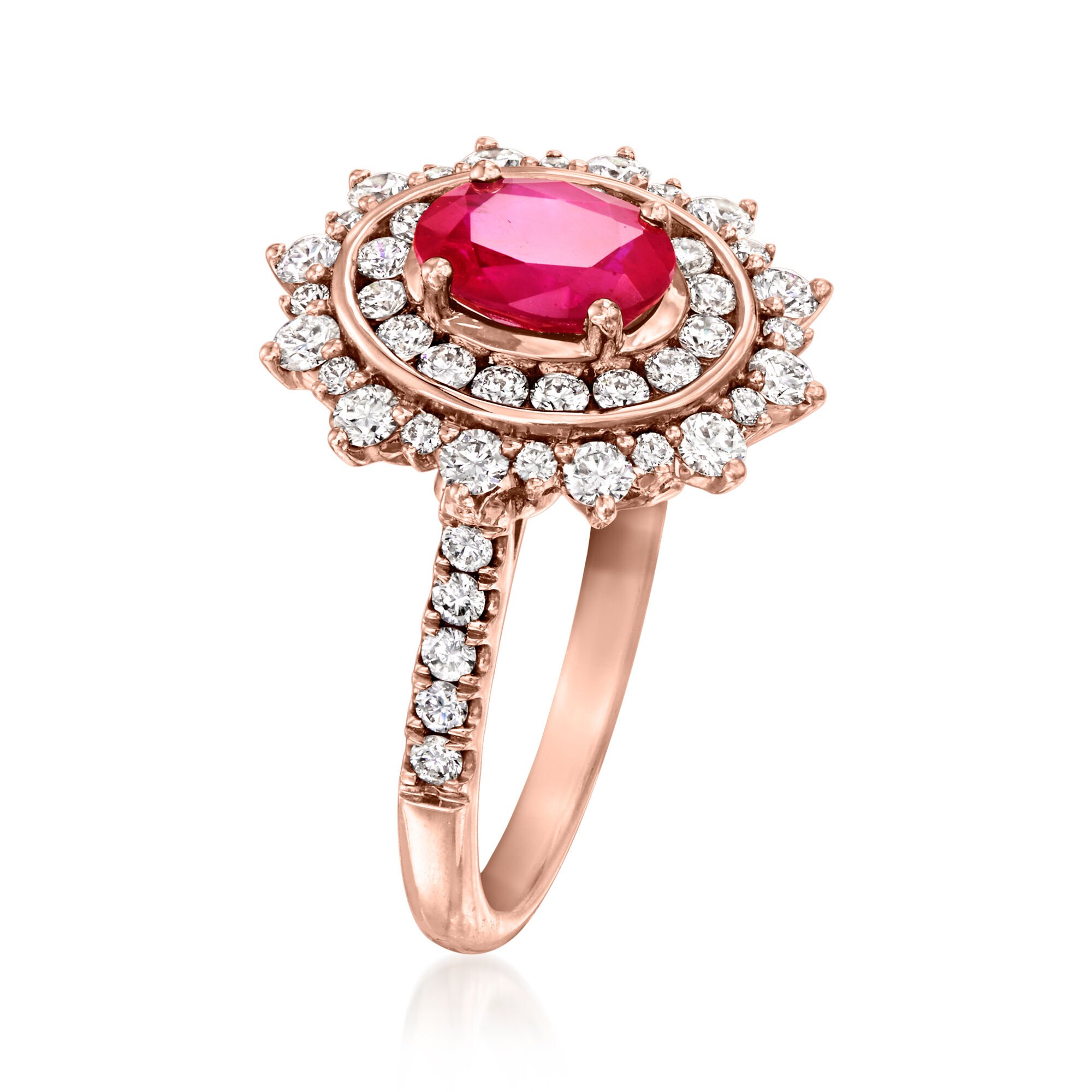 C. 2010 Vintage 1.00 Carat Ruby Ring with 1.00 ct. t.w. Diamonds in 14kt Rose Gold. Size 5