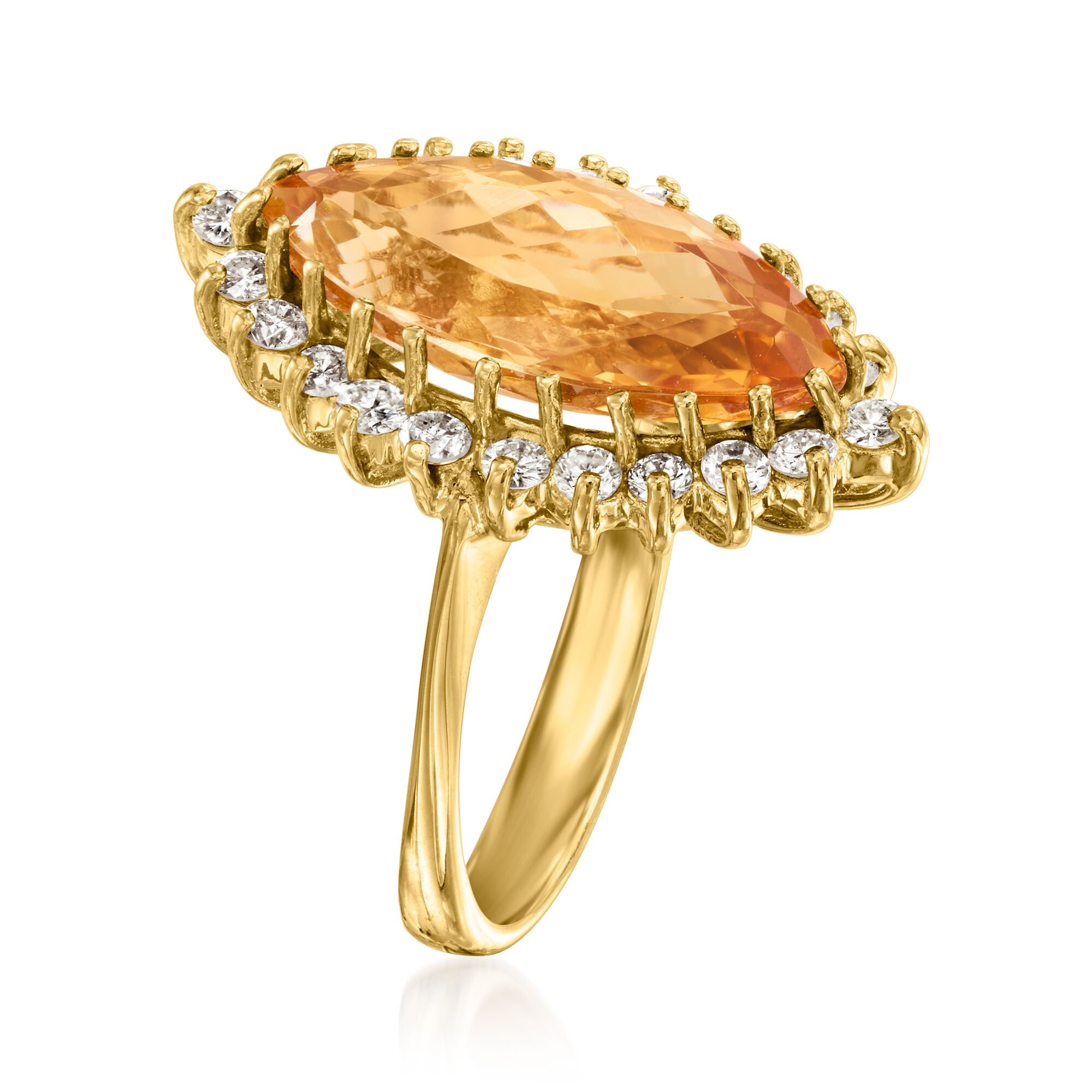 C. 2020 Vintage 6.35 Carat Yellow Topaz Ring with .85 ct. t.w. Diamonds in 14kt Yellow Gold. Size 6