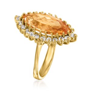 C. 2020 Vintage 6.35 Carat Yellow Topaz Ring with .85 ct. t.w. Diamonds in 14kt Yellow Gold. Size 6