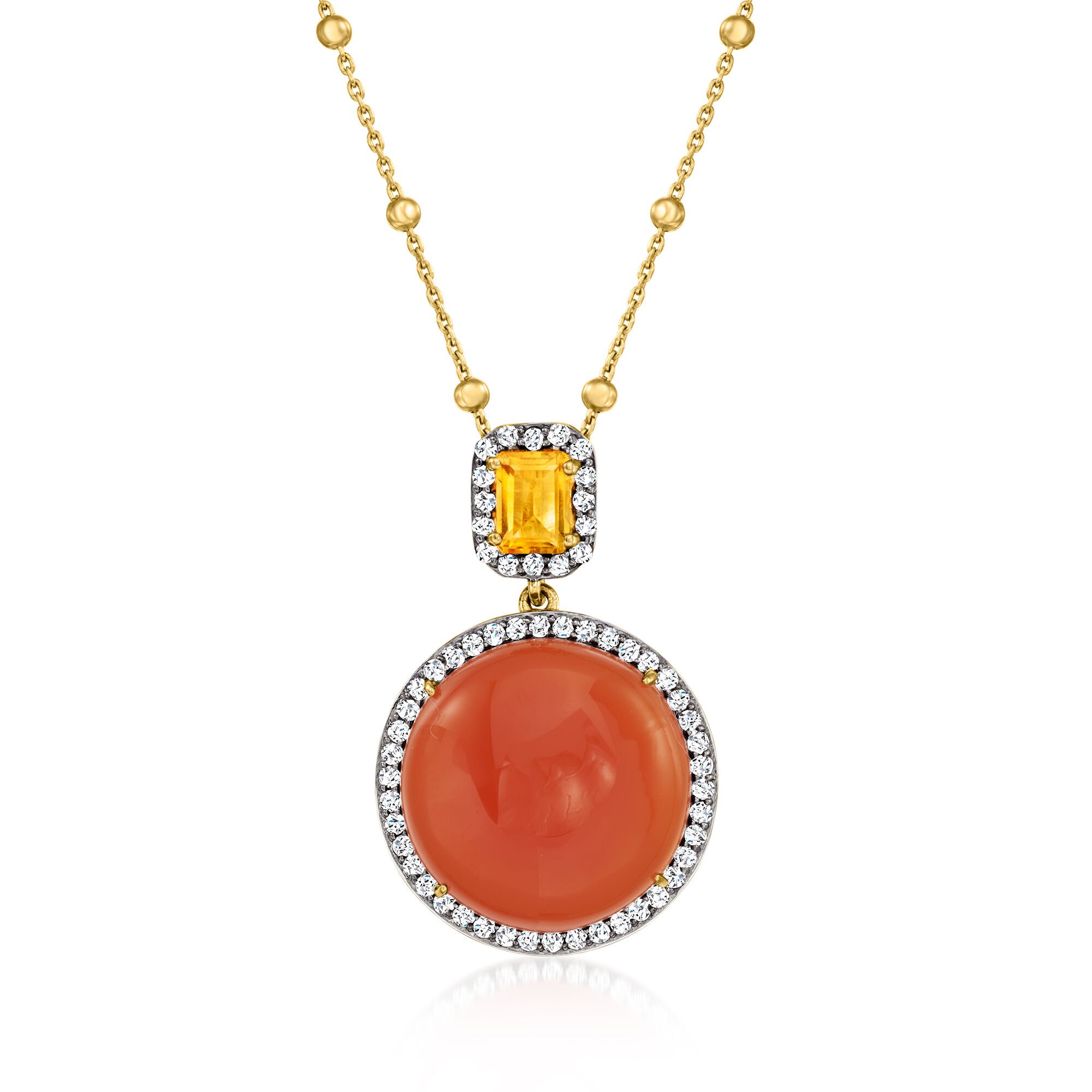 Carnelian and 1.00 Carat Citrine Pendant Necklace with .90 ct. t.w. White Topaz in 18kt Gold Over Sterling