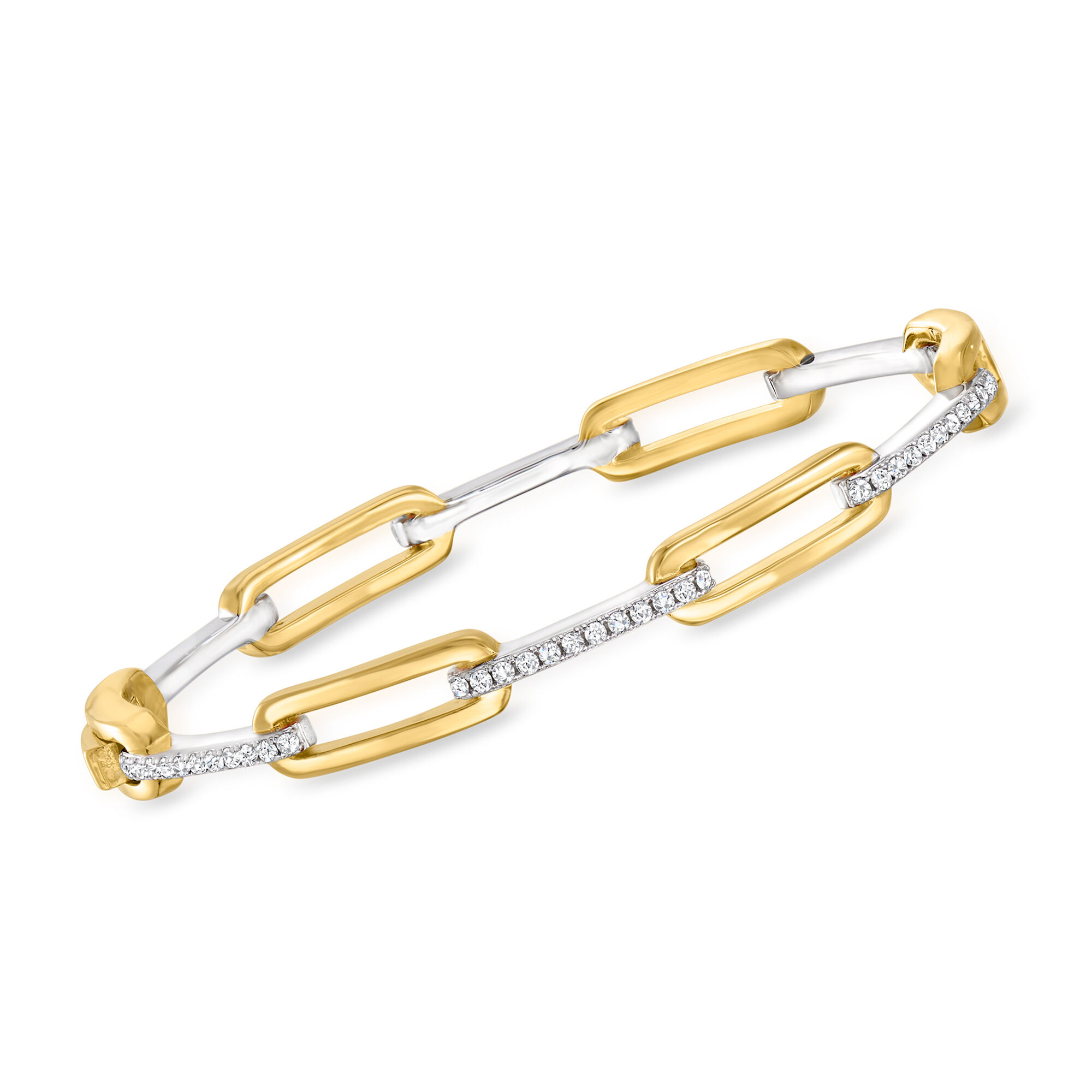 Charles Garnier 1.00 ct. t.w. CZ Paper Clip Link Bangle Bracelet in Two-Tone Sterling Silver. 7.5″