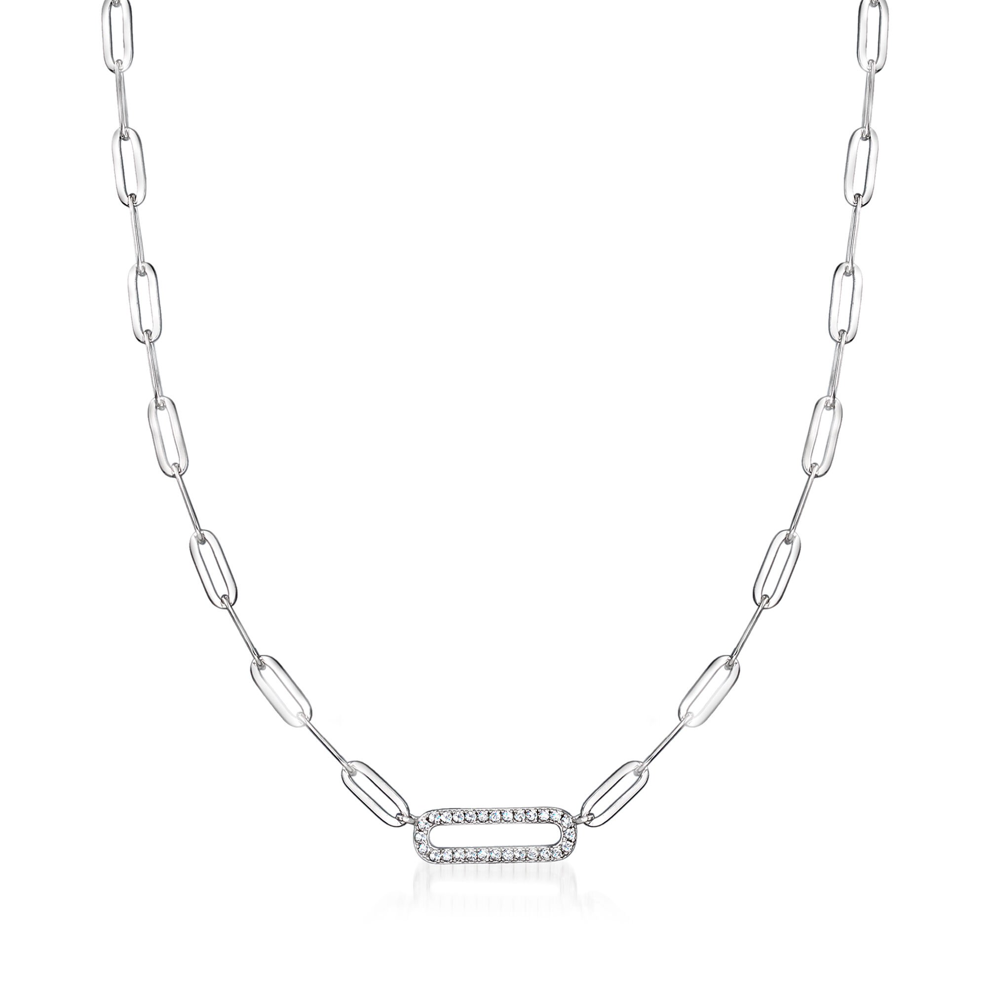 Charles Garnier .25 ct. t.w. CZ Paper Clip Link Necklace in Sterling Silver. 17″