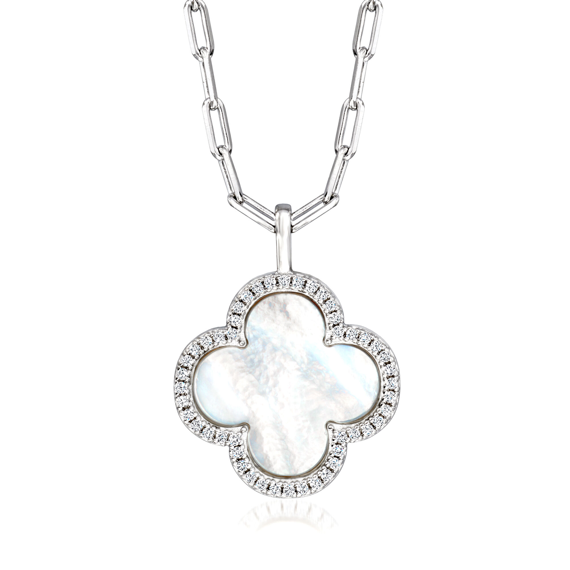 Charles Garnier Mother-of-Pearl and .24 ct. t.w. CZ Clover Paper Clip Link Necklace. 17″