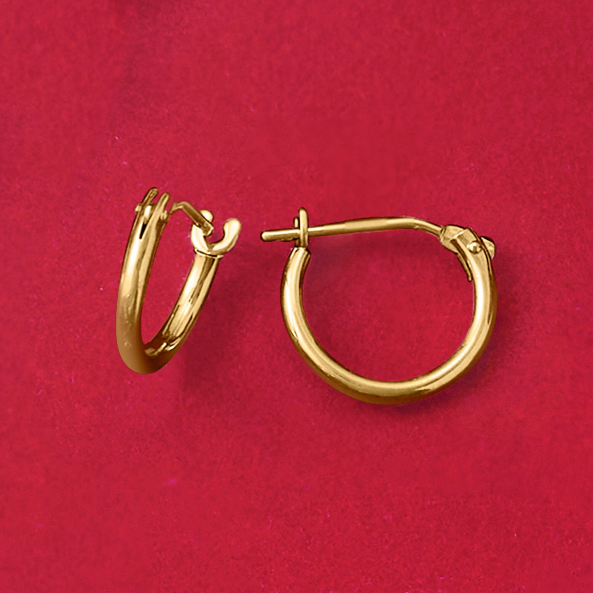 Child’s 1.2mm 14kt Yellow Gold Hoop Earrings. 3/8″