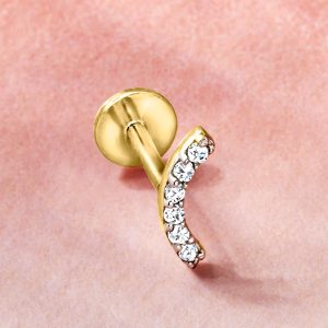 Diamond Curved Bar Single Flat-Back Stud Earring in 14kt Yellow Gold