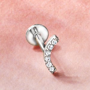 Diamond Curved Bar Single Flat-Back Stud Earring in Sterling Silver