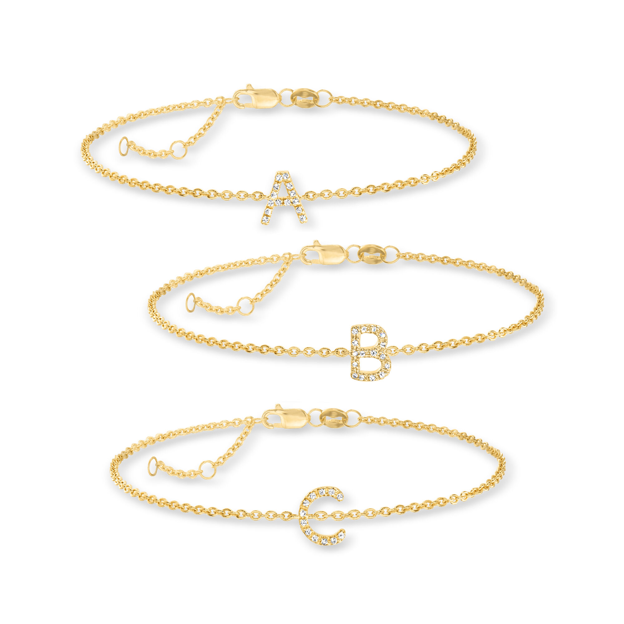 Diamond Initial Bracelet in 18kt Gold Over Sterling
