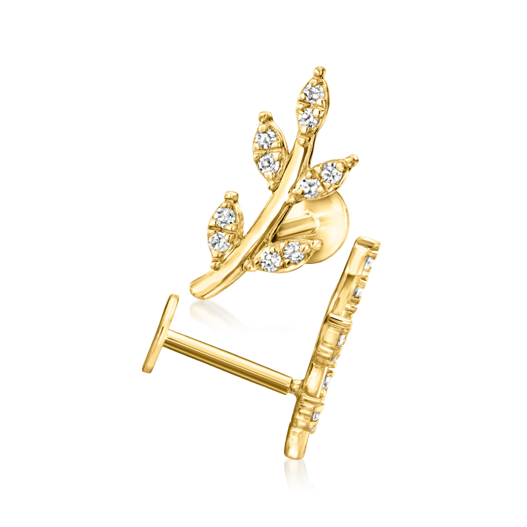 Diamond Leaf Flat-Back Ear Climbers in 14kt Yellow Gold