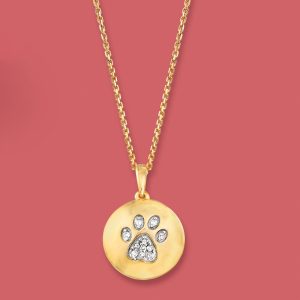 Diamond Paw Print Circle Pendant Necklace in 18kt Gold Over Sterling