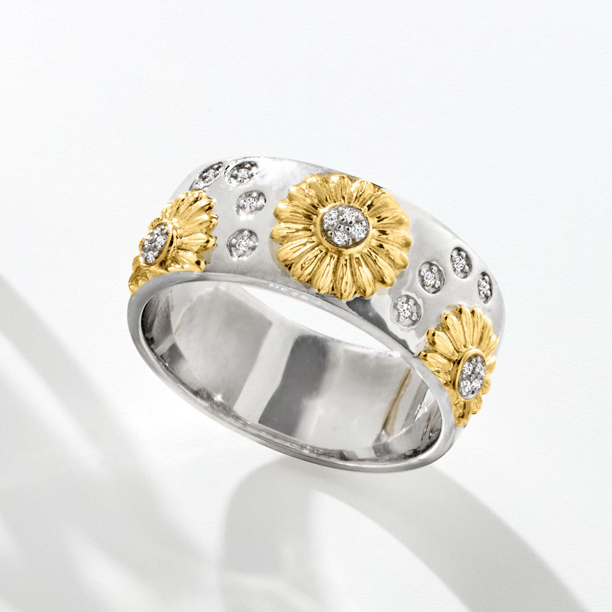 Diamond Sunflower Ring in Sterling Silver and 18kt Gold Over Sterling