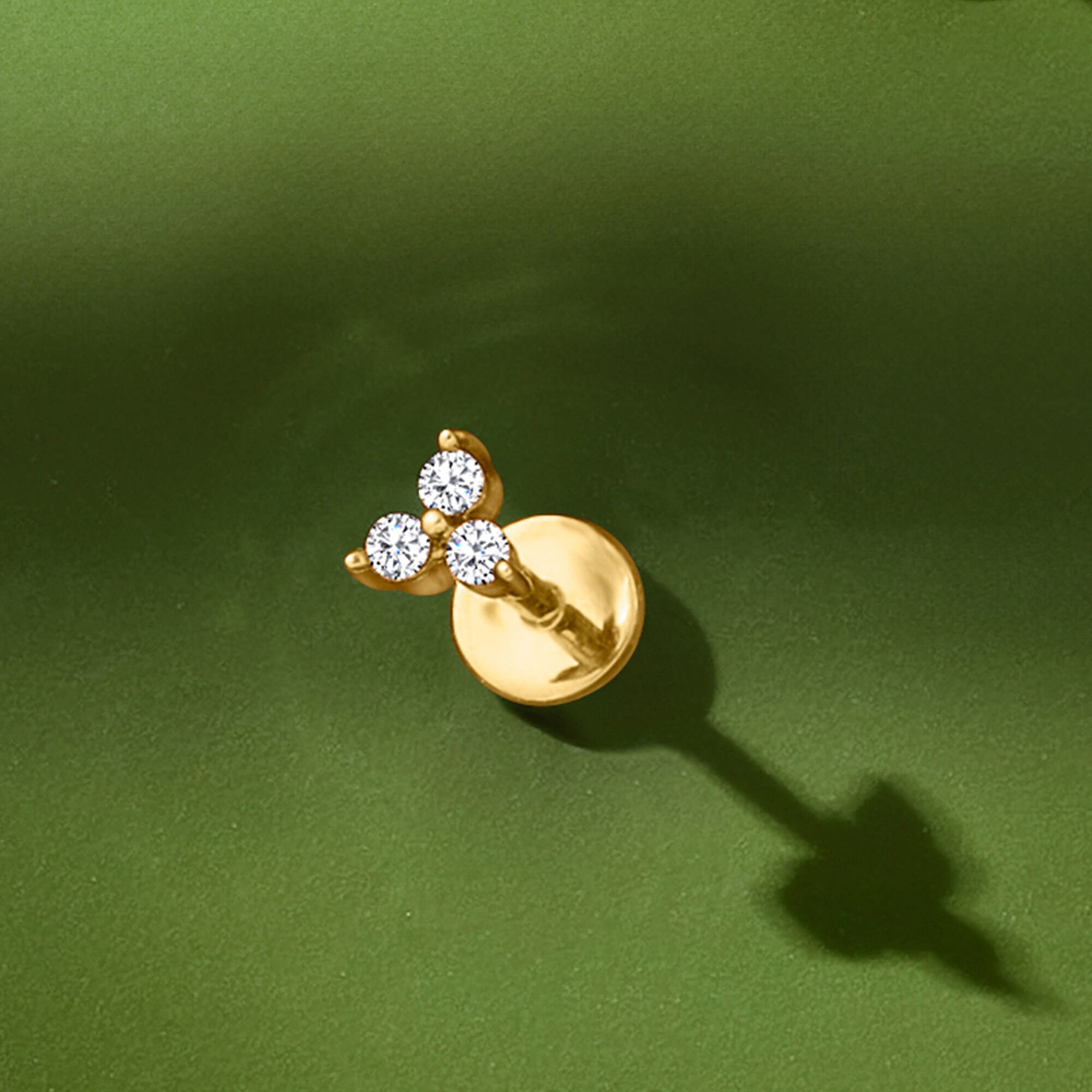 Diamond Three-Stone Single Flat-Back Stud Earring in 14kt Yellow Gold