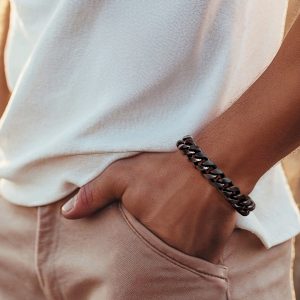 Men’s 14mm Matte Black Stainless Steel Cuban-Link Bracelet. 8.5″