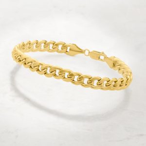 Men’s 5.7mm 14kt Yellow Gold Faceted Curb-Link Bracelet. 8.5″