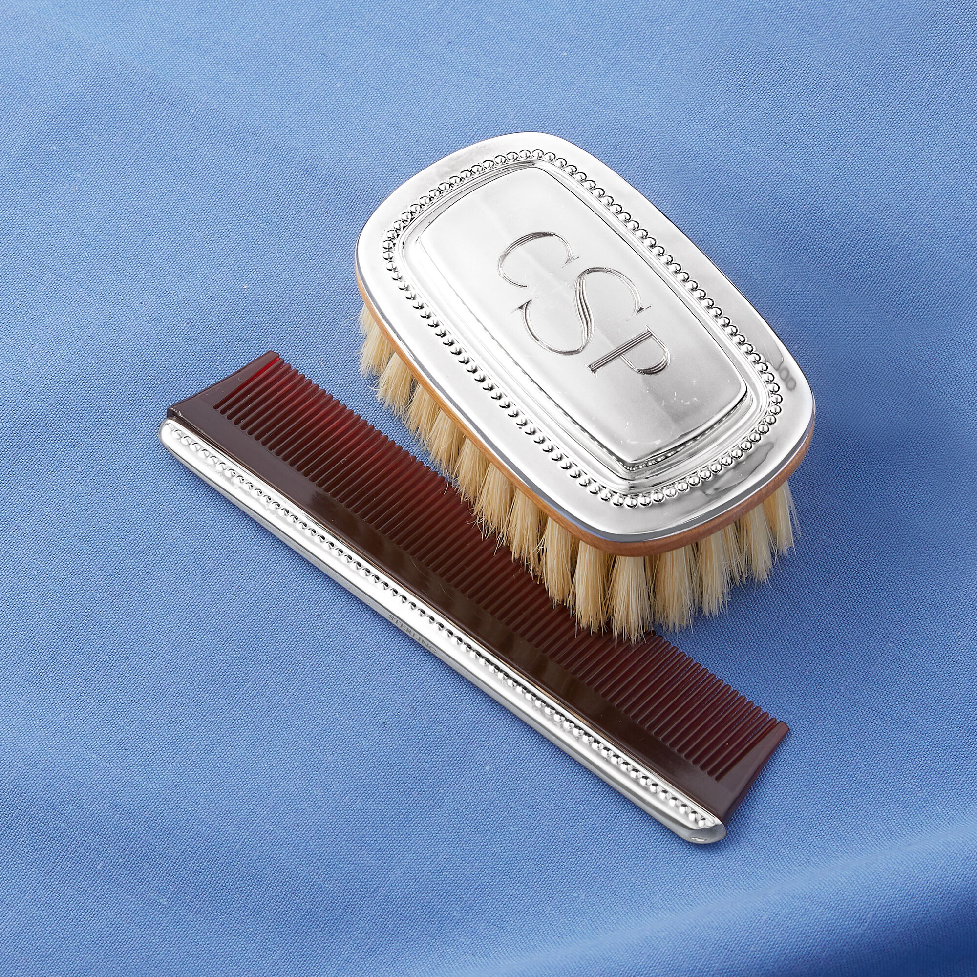 Gorham Boy’s Beaded Sterling Silver Personalized Brush and Comb Set
