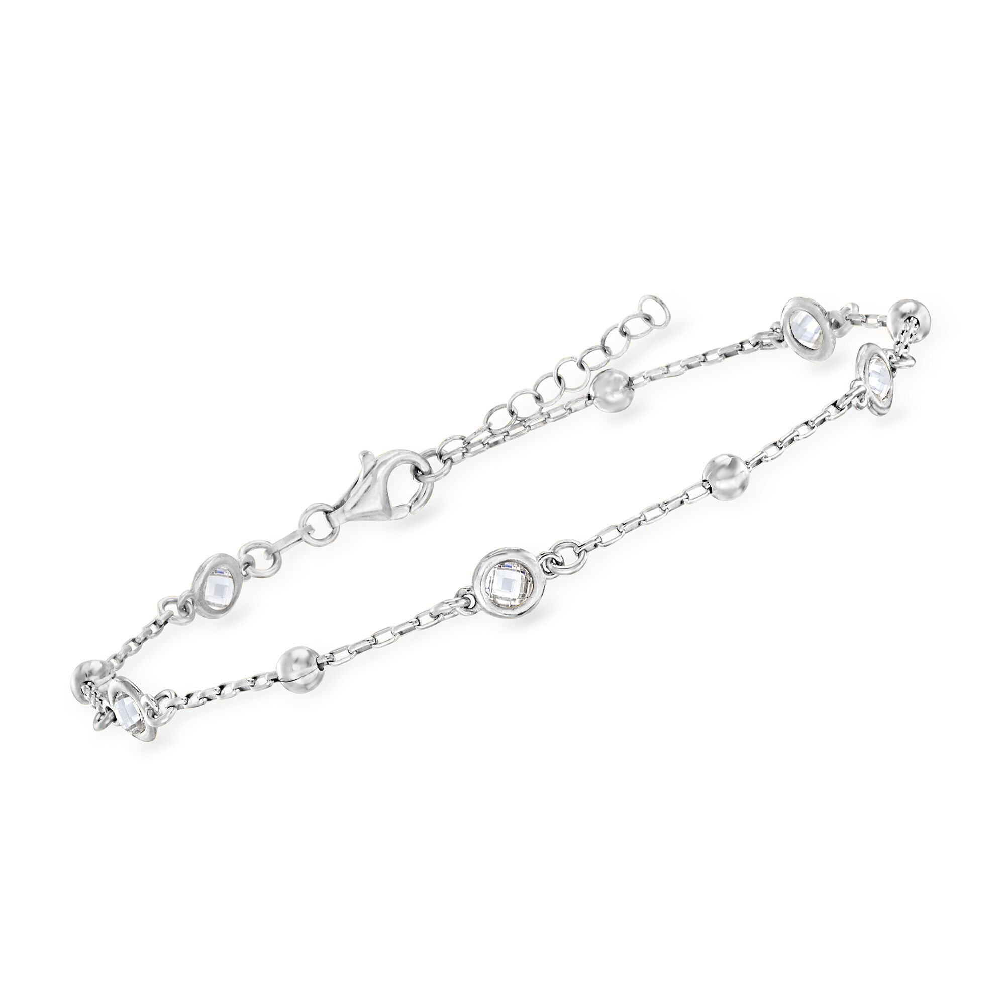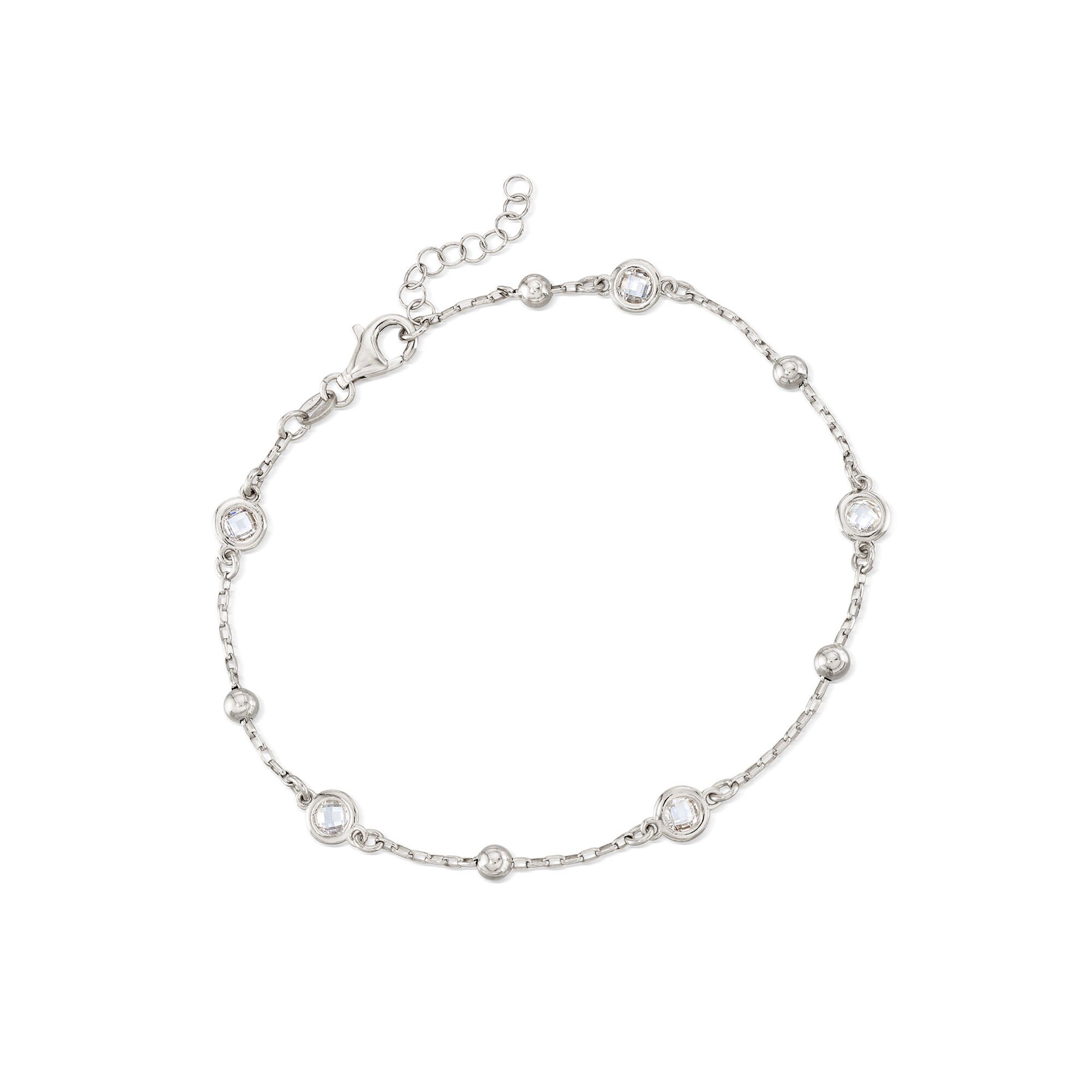 Italian 1.15 ct. t.w. Bezel-Set CZ Station Anklet in Sterling Silver