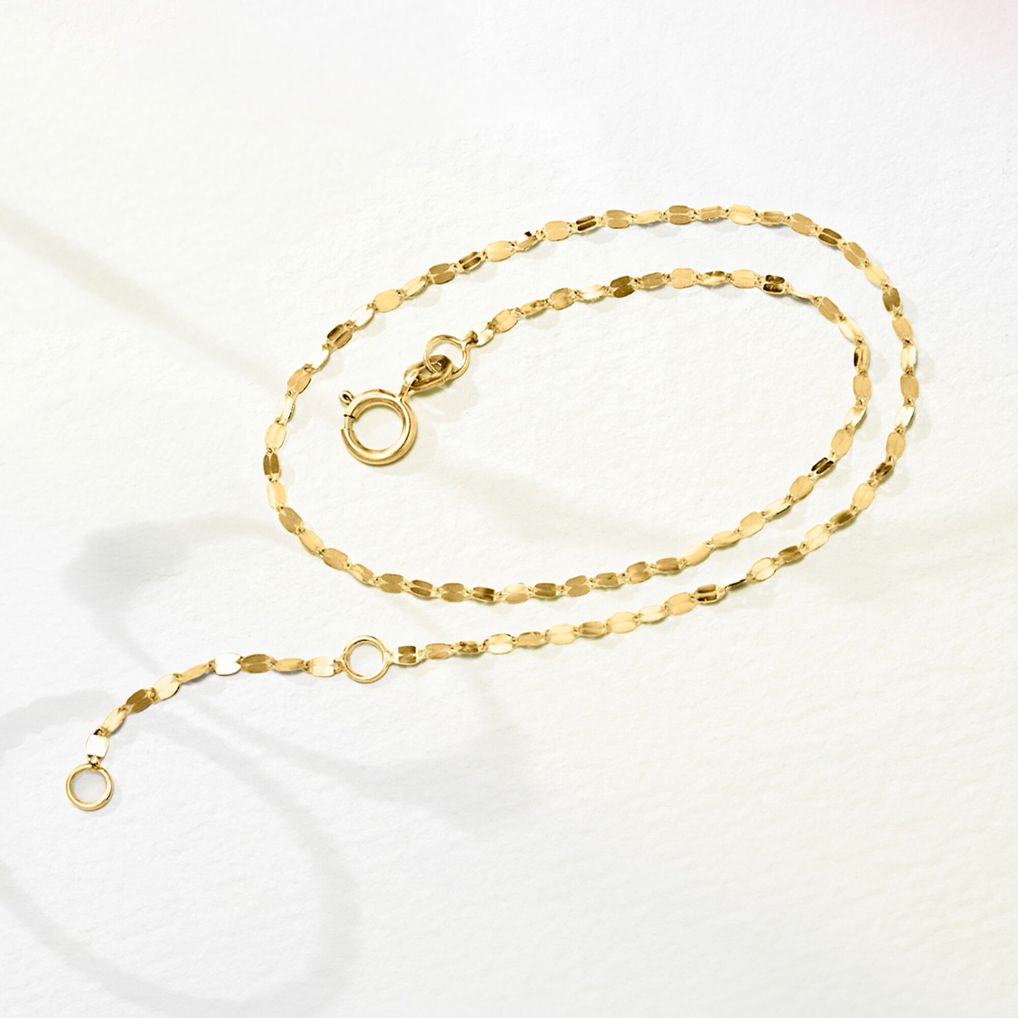 Italian 1.6mm 14kt Yellow Gold Lumachina-Chain Anklet. 9″