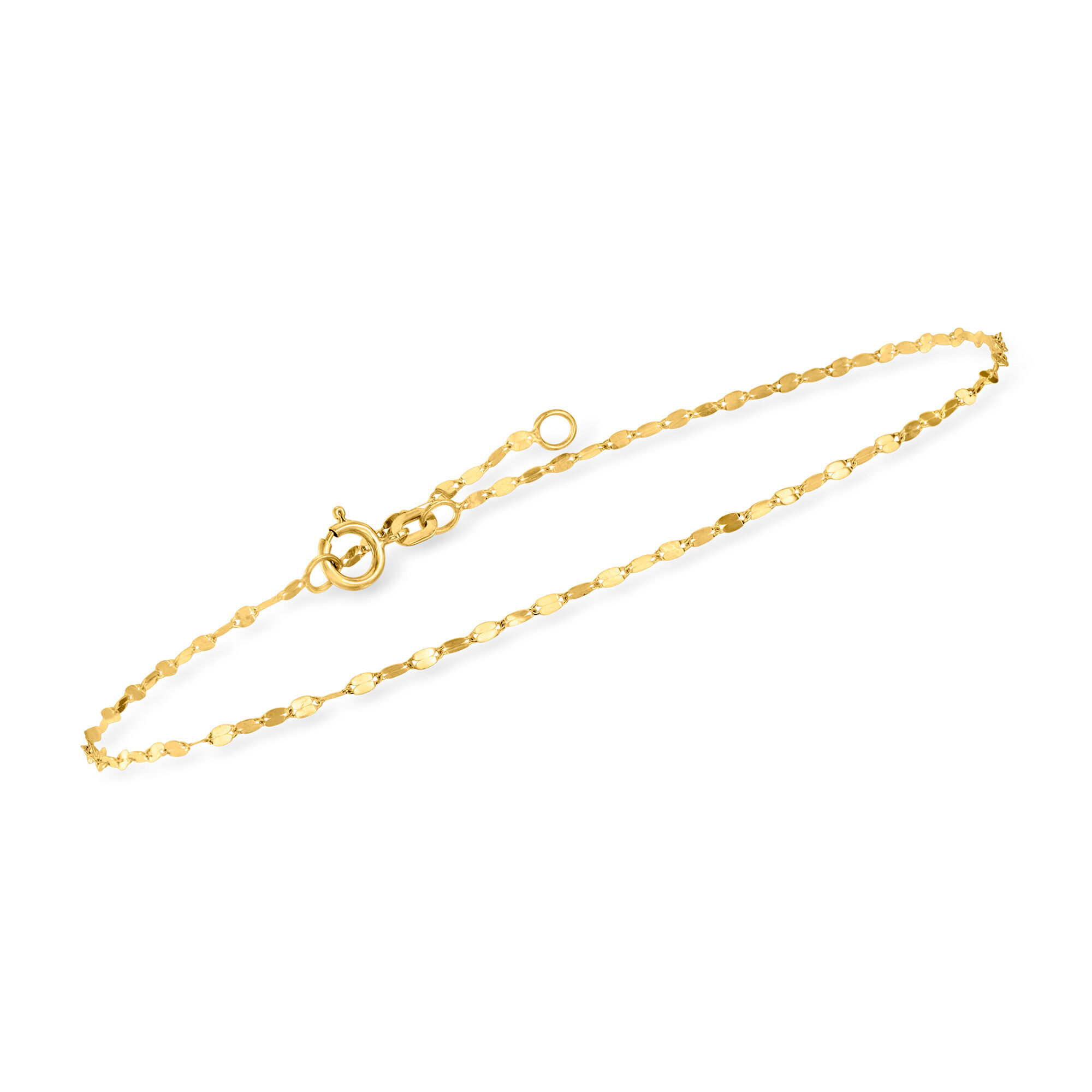 Italian 1.6mm 14kt Yellow Gold Lumachina-Chain Anklet. 9″