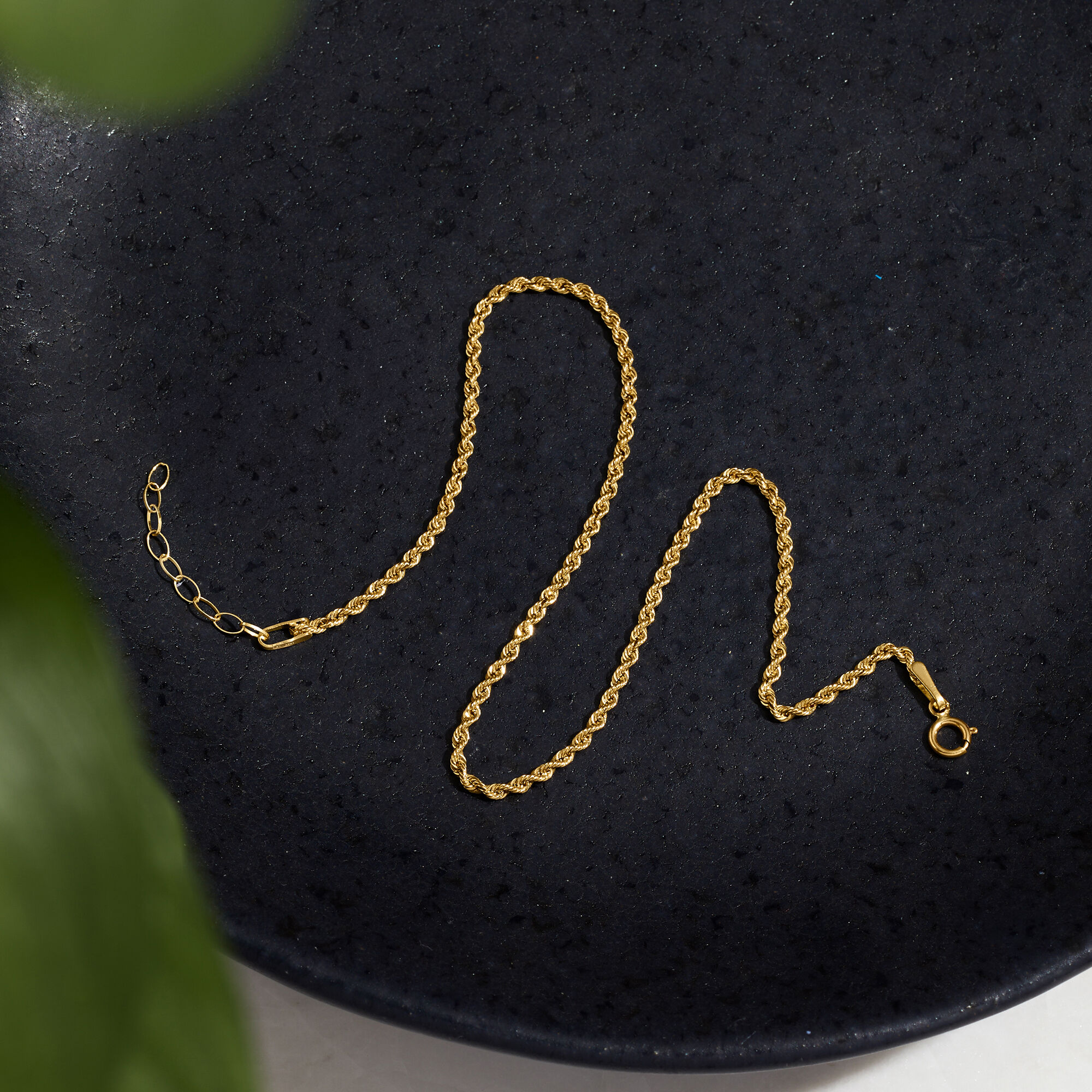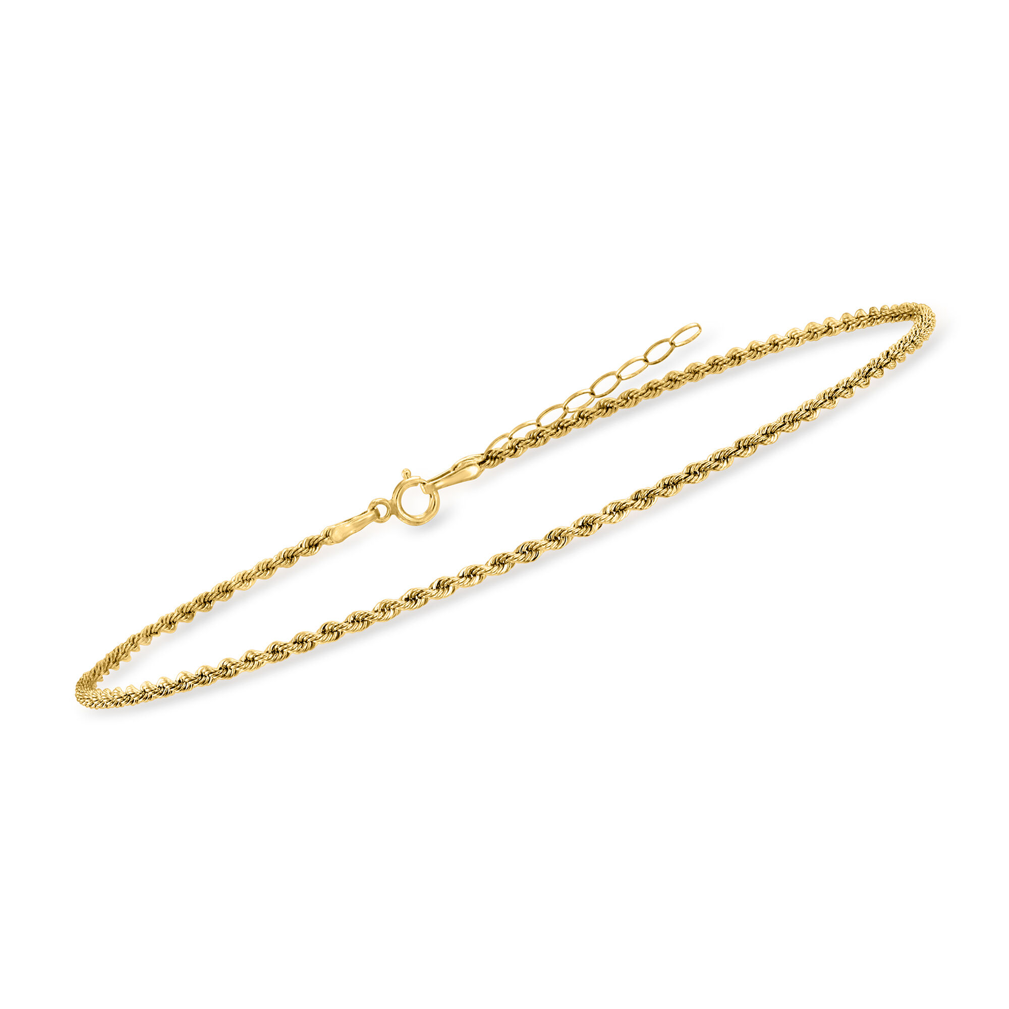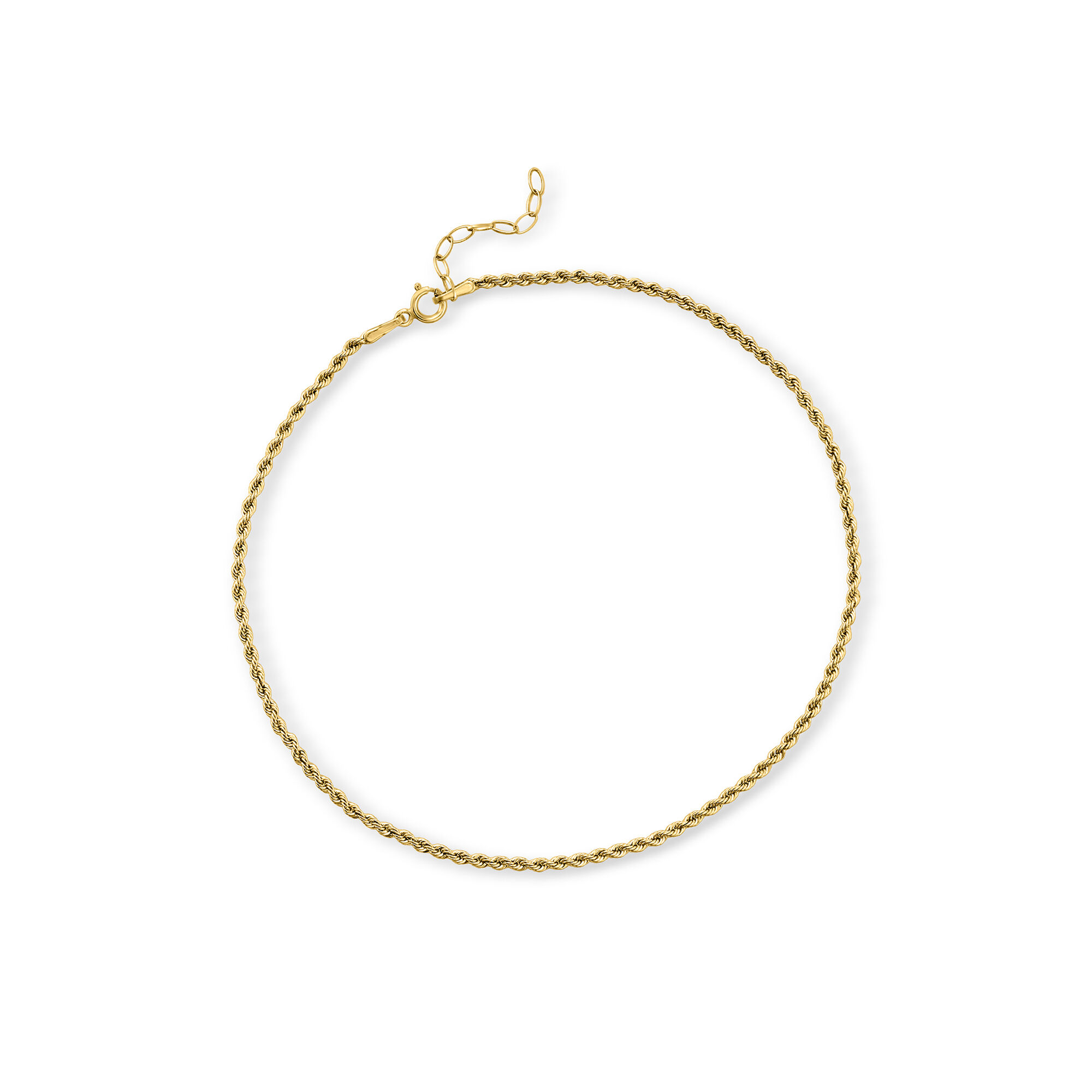 Italian 1.6mm 14kt Yellow Gold Rope-Chain Anklet. 9″