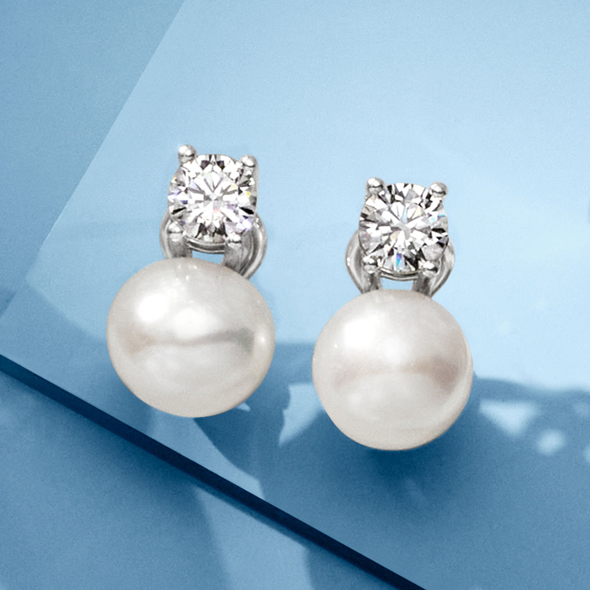 Italian 10.5-11mm Cultured Pearl and 1.50 ct. t.w. CZ Drop Earrings in Sterling Silver