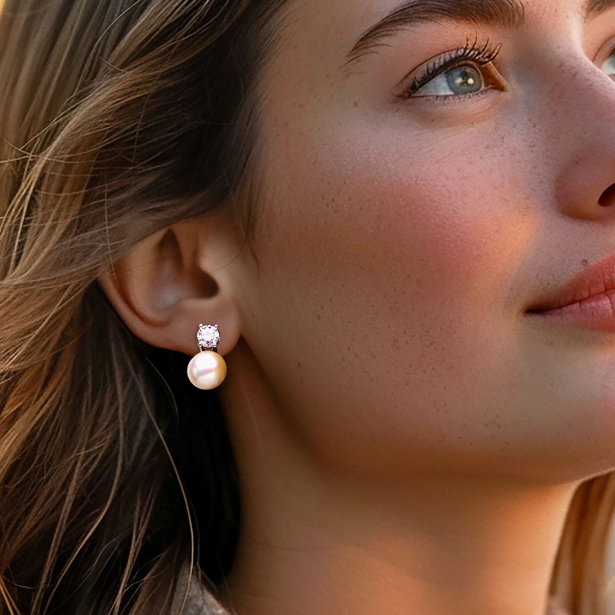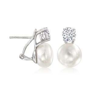 Italian 10.5-11mm Cultured Pearl and 1.50 ct. t.w. CZ Drop Earrings in Sterling Silver