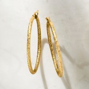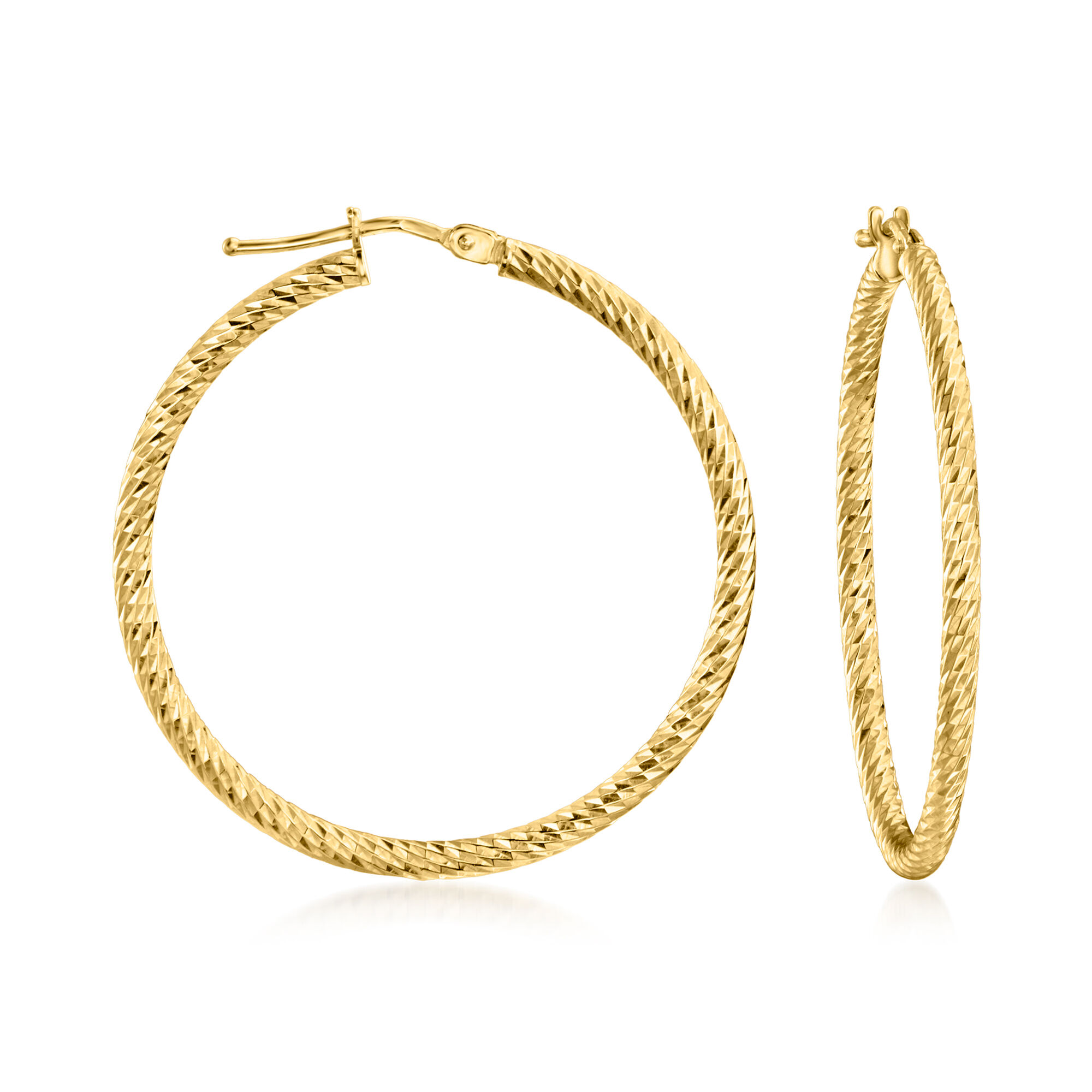 Italian 10kt Yellow Gold Diamond-Cut Hoop Earrings. 1 3/8″