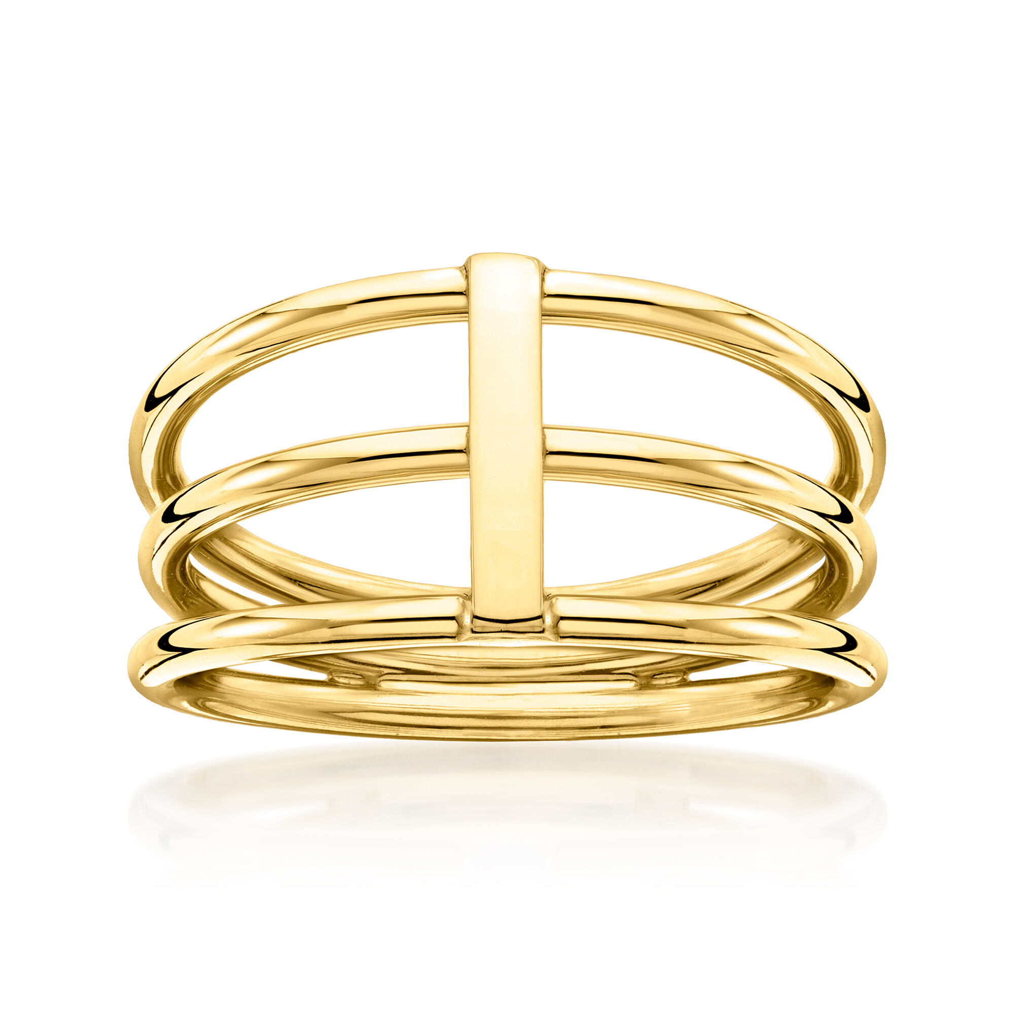 Italian 10kt Yellow Gold Three-Row Bar Ring