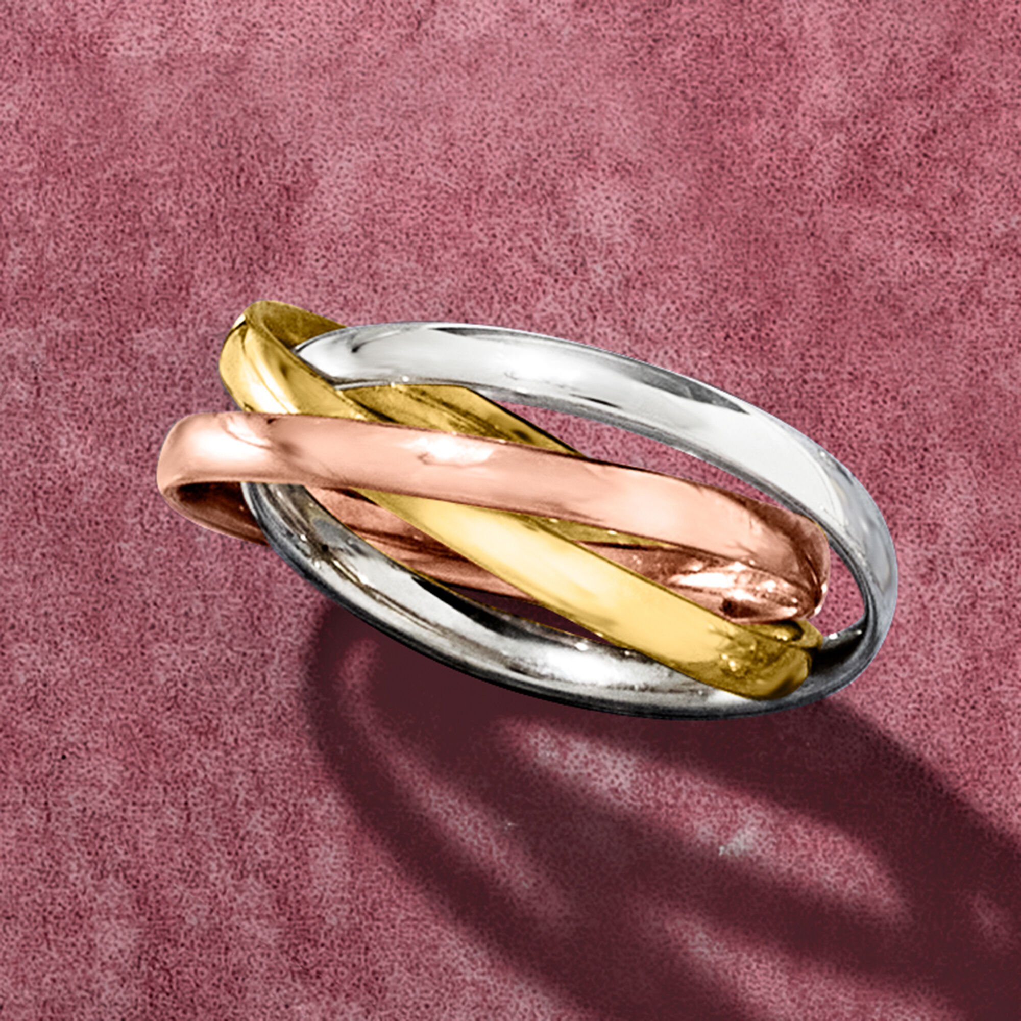 Italian 14kt Tri-Colored Gold Rolling Ring