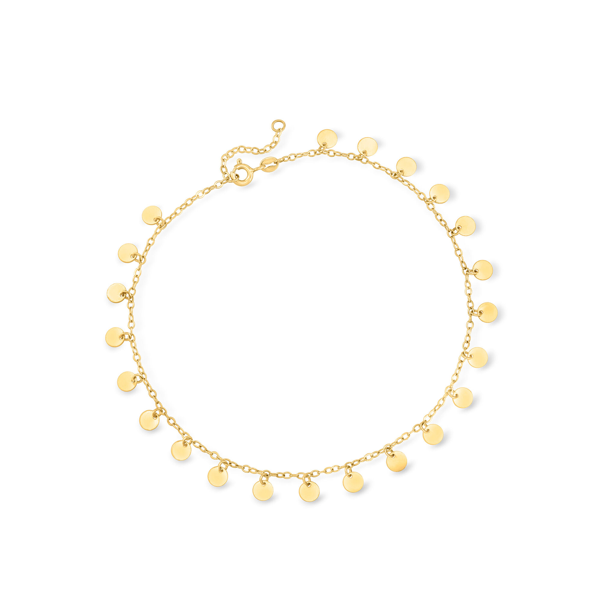 Italian 14kt Yellow Gold Circle-Station Anklet. 9″