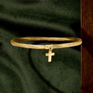 Italian 14kt Yellow Gold Cross Charm Mesh Bracelet