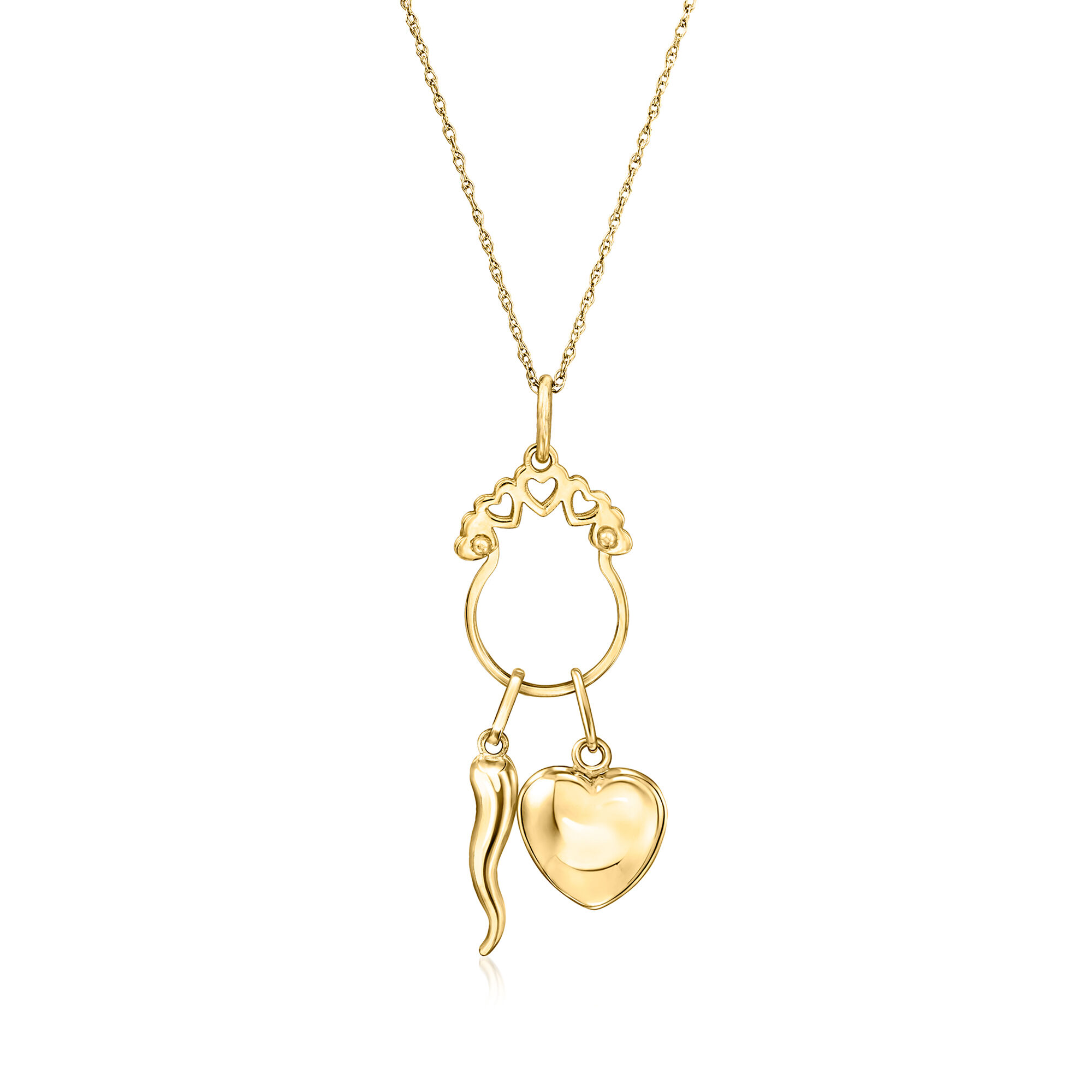 Italian 14kt Yellow Gold Heart-Cutout Charm Holder Pendant