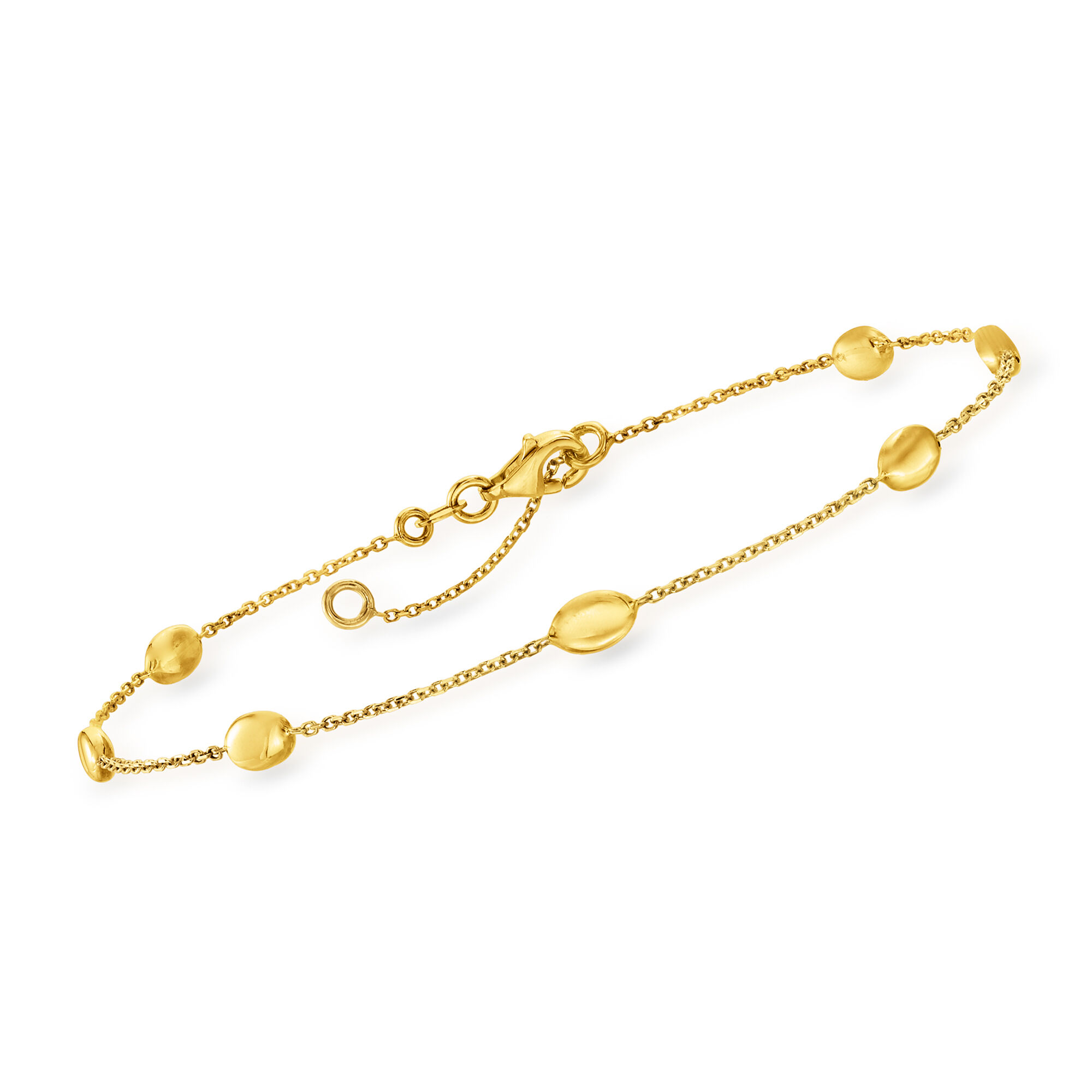 Italian 14kt Yellow Gold Oval-Bead Station Anklet. 9″