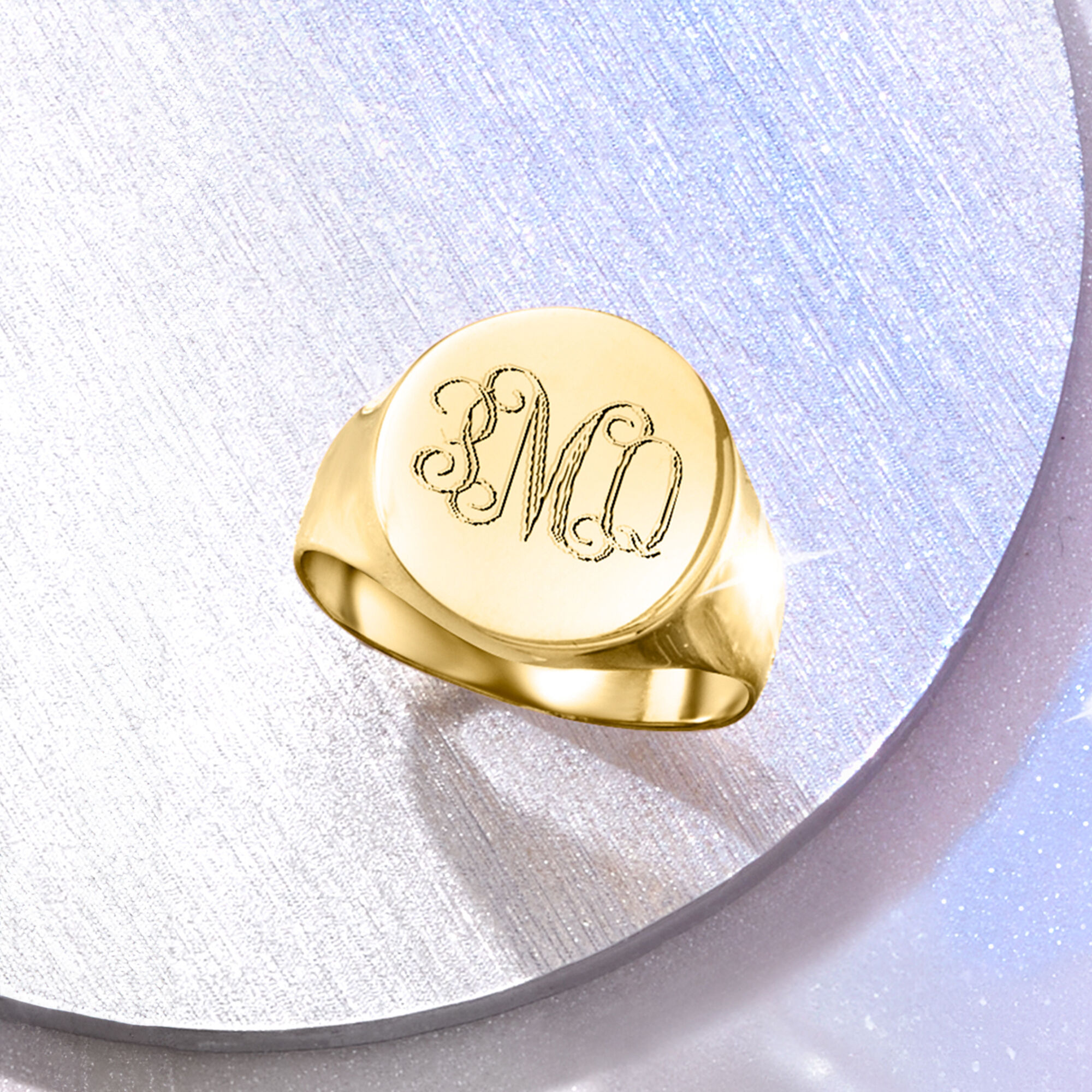Italian 14kt Yellow Gold Personalized Circle Signet Ring