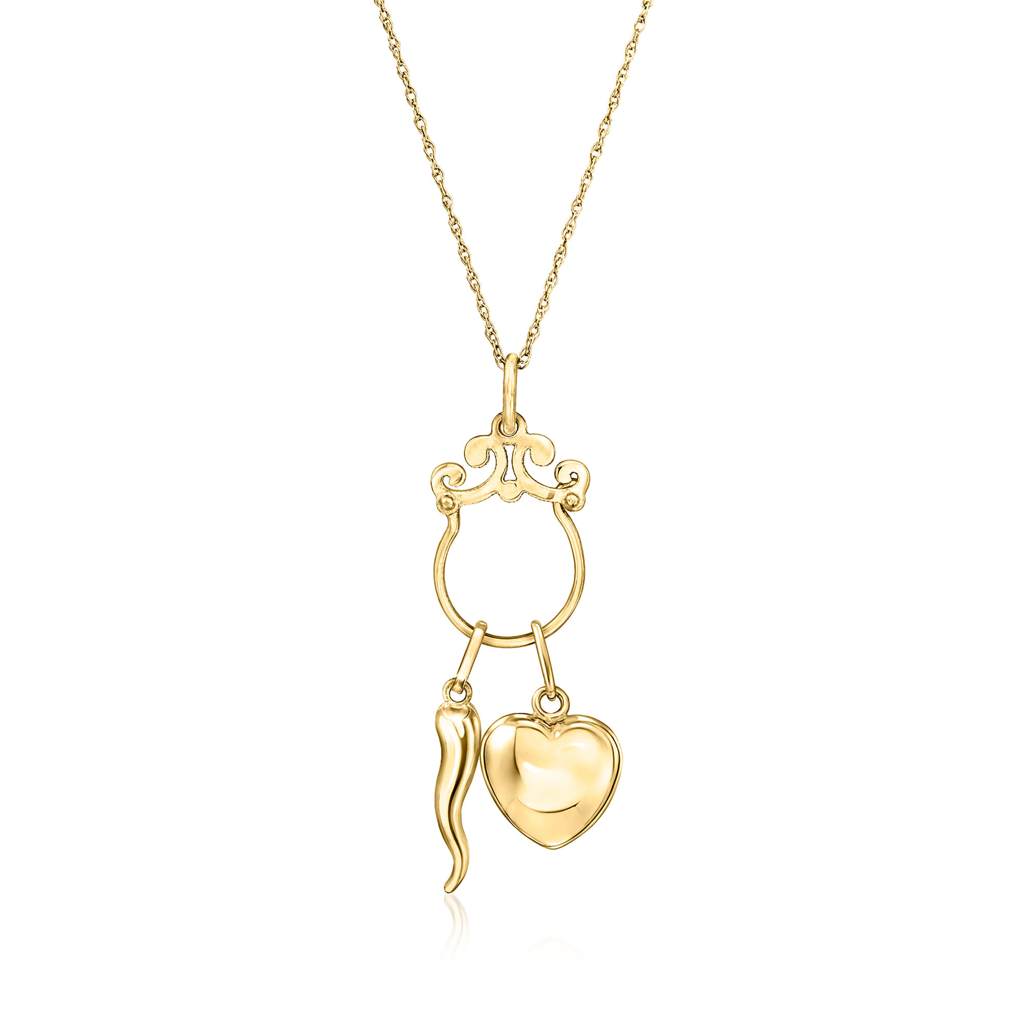 Italian 14kt Yellow Gold Scrolled Charm Holder Pendant
