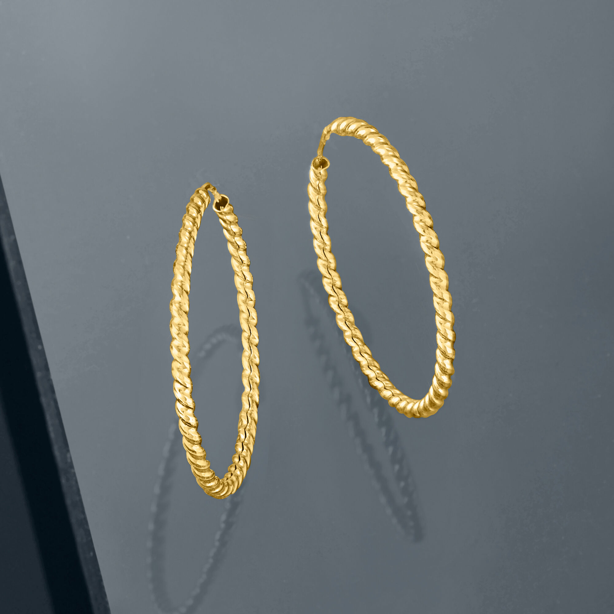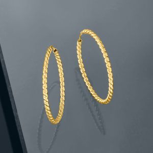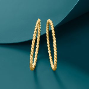 Italian 14kt Yellow Gold Twisted Hoop Earrings. 7/8″