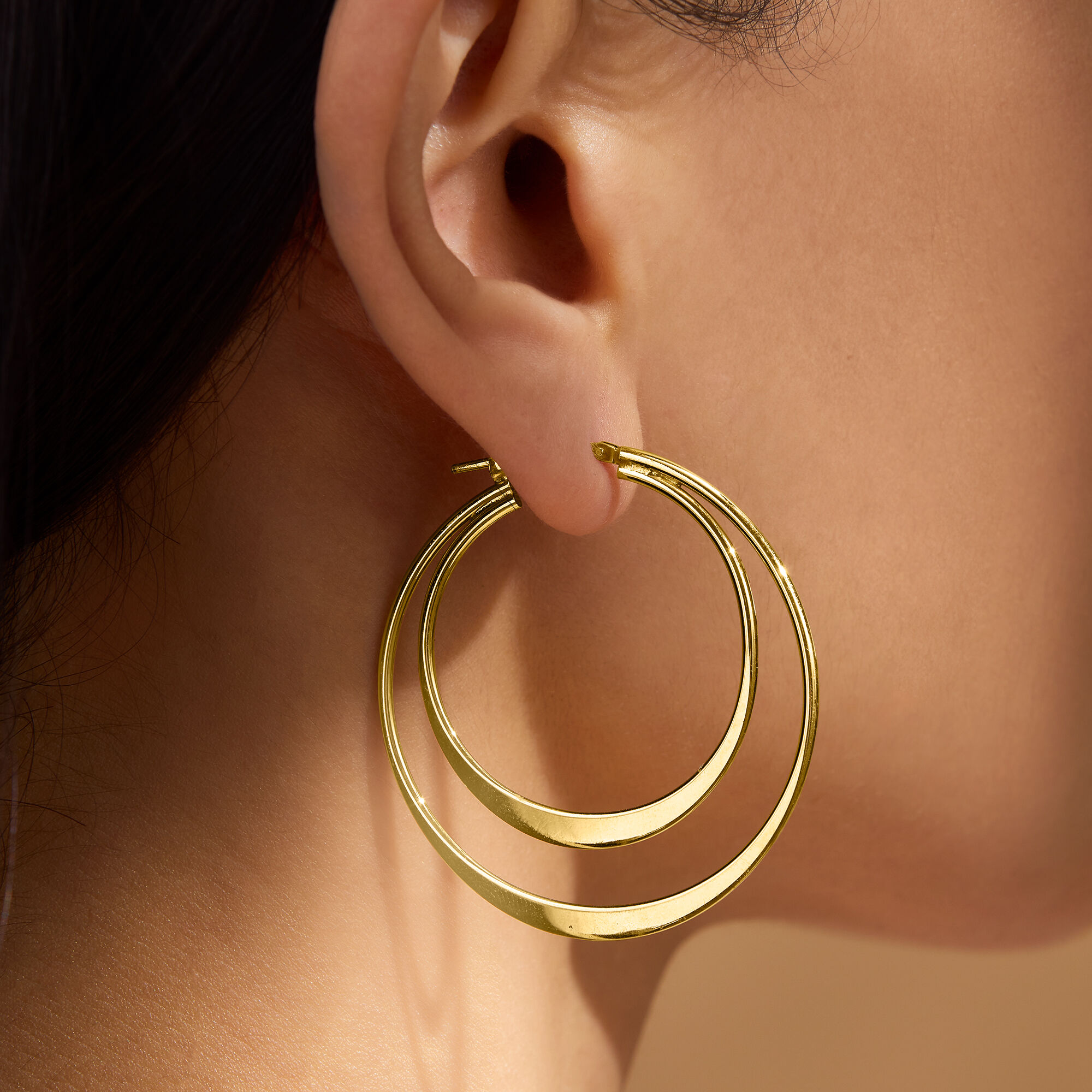 Italian 18kt Gold Over Sterling Double-Hoop Earrings. 1 3/4″