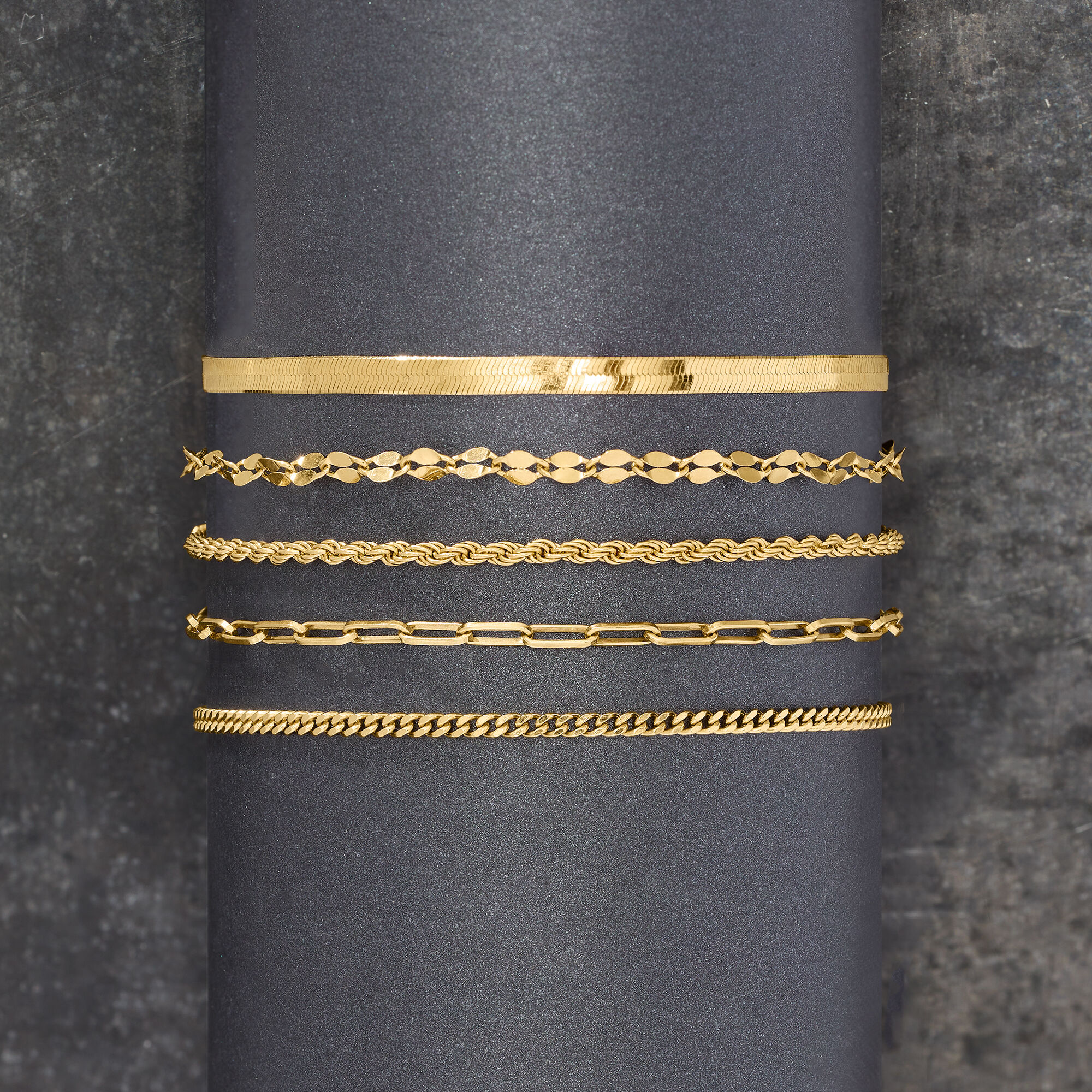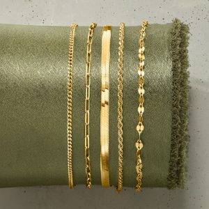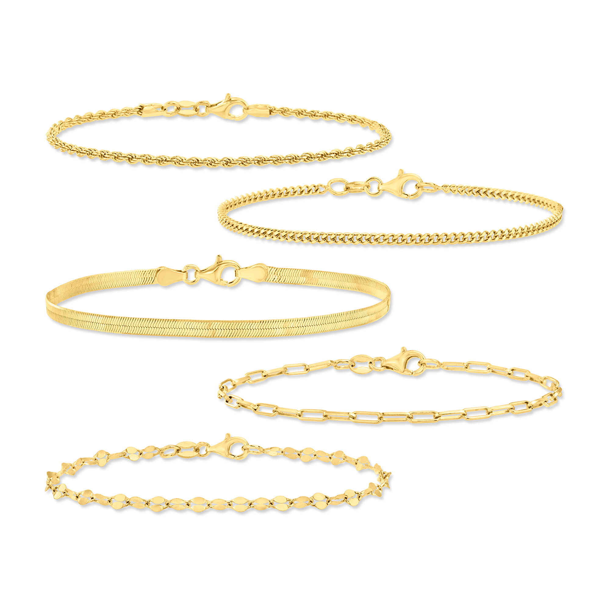 Italian 18kt Gold Over Sterling Jewelry Set: Five Chain Bracelets
