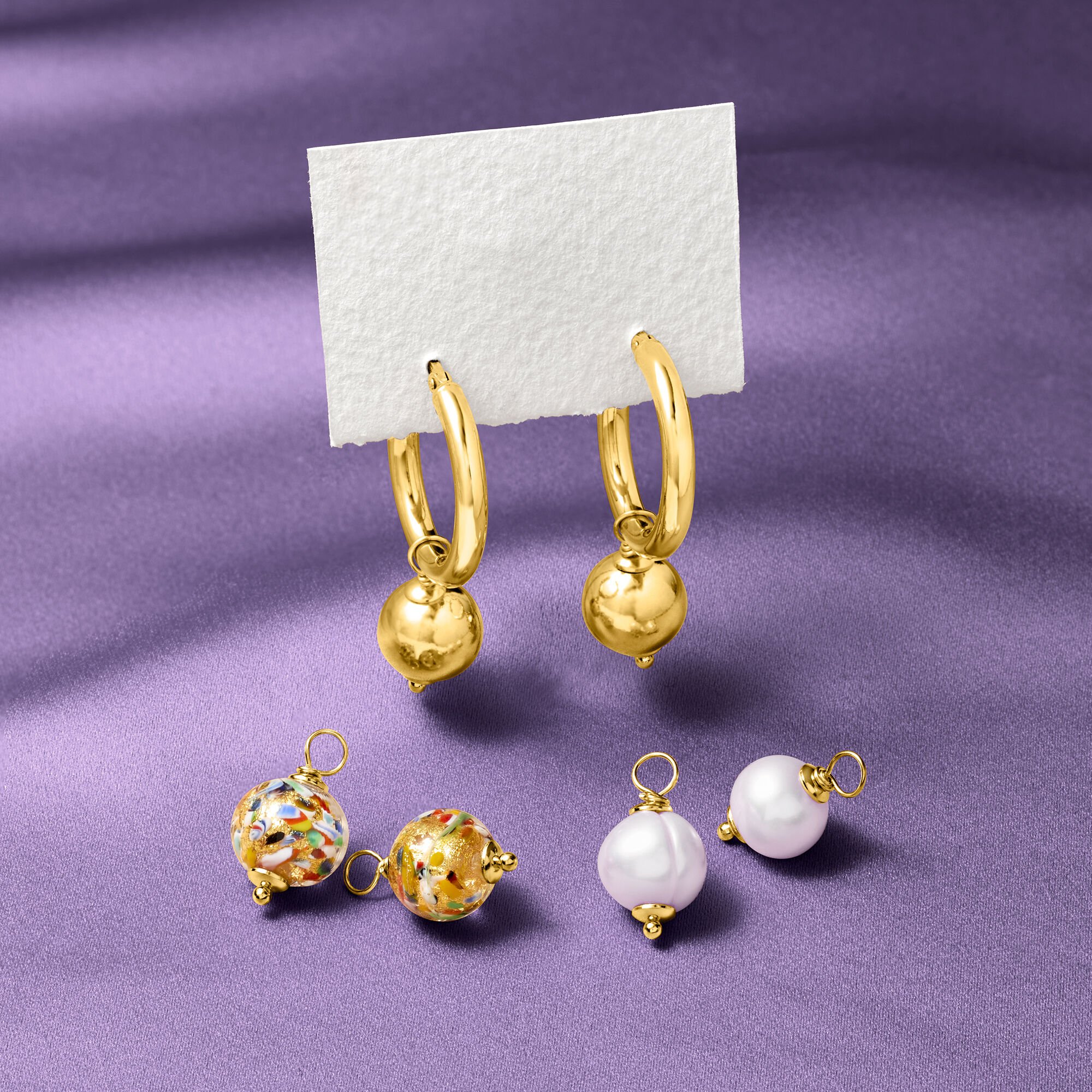 Italian 18kt Gold Over Sterling Jewelry Set: Hoop Earrings and Three Pairs of Interchangeable Drops