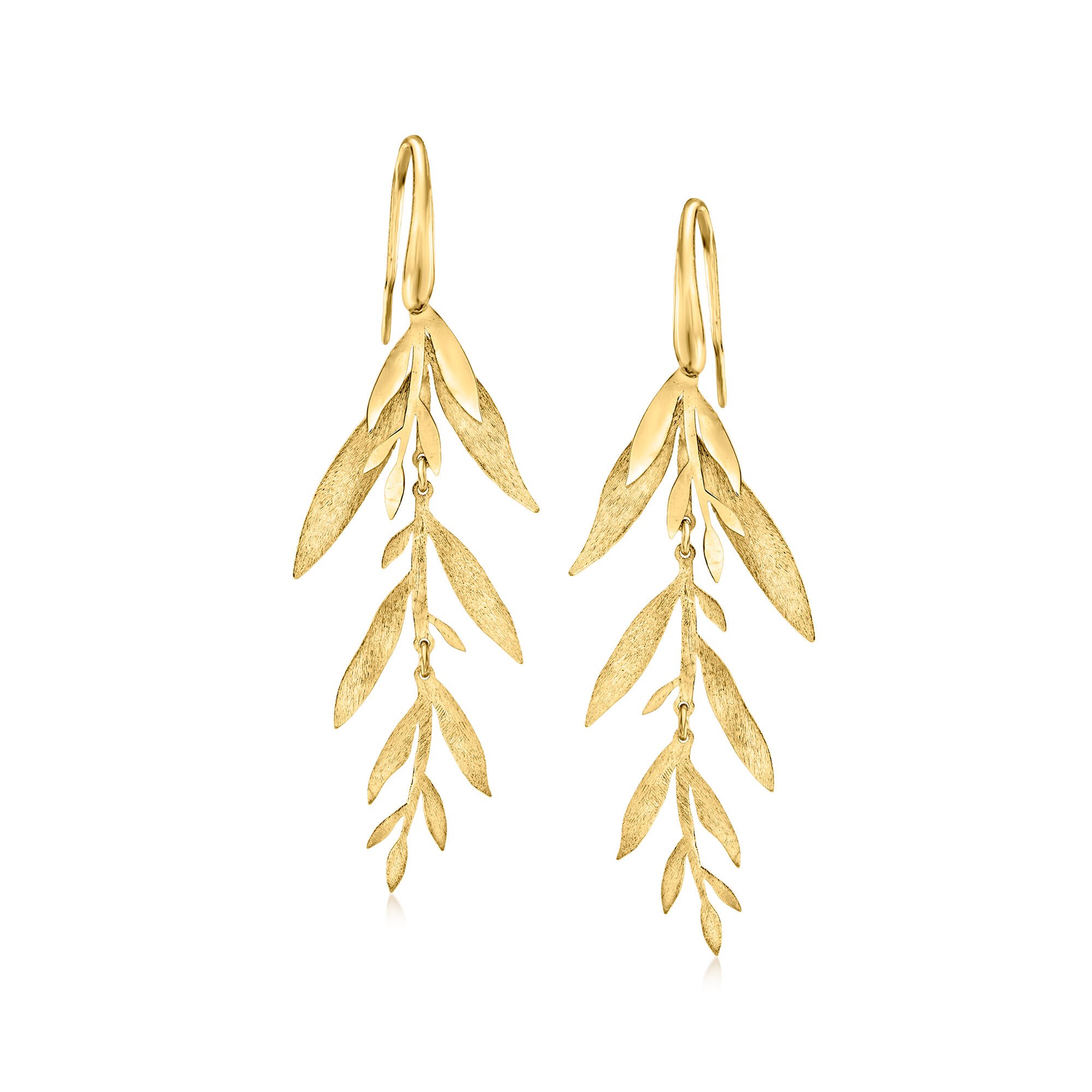 Italian 18kt Gold Over Sterling Leaf and Branch Drop Earrings