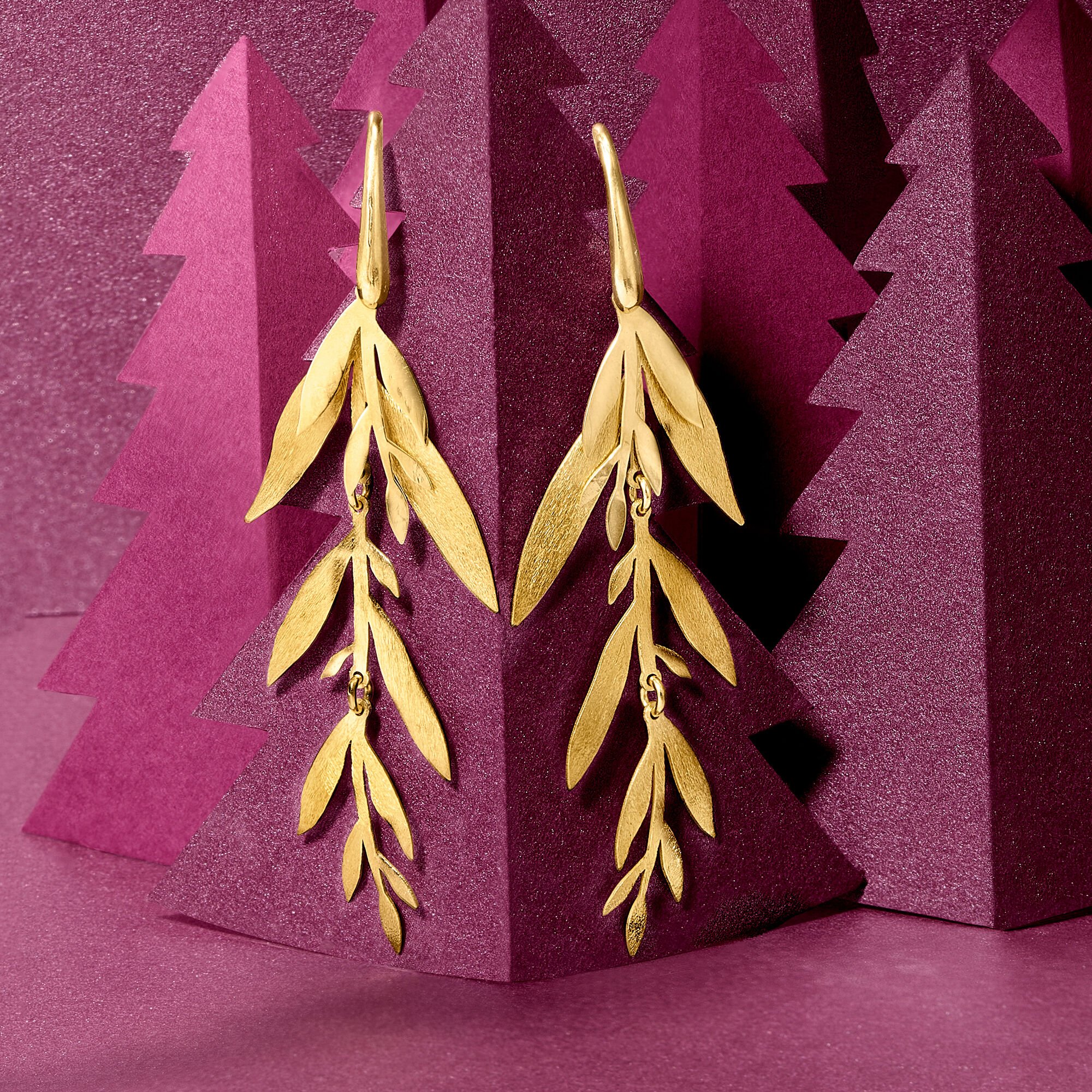 Italian 18kt Gold Over Sterling Leaf and Branch Drop Earrings