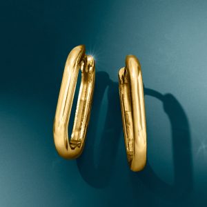 Italian 18kt Gold Over Sterling Medium Paper Clip Link Hoop Earrings. 3/4″