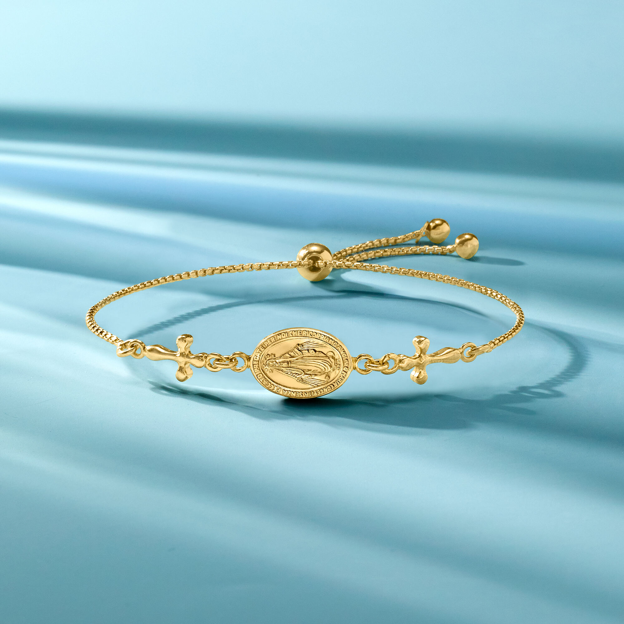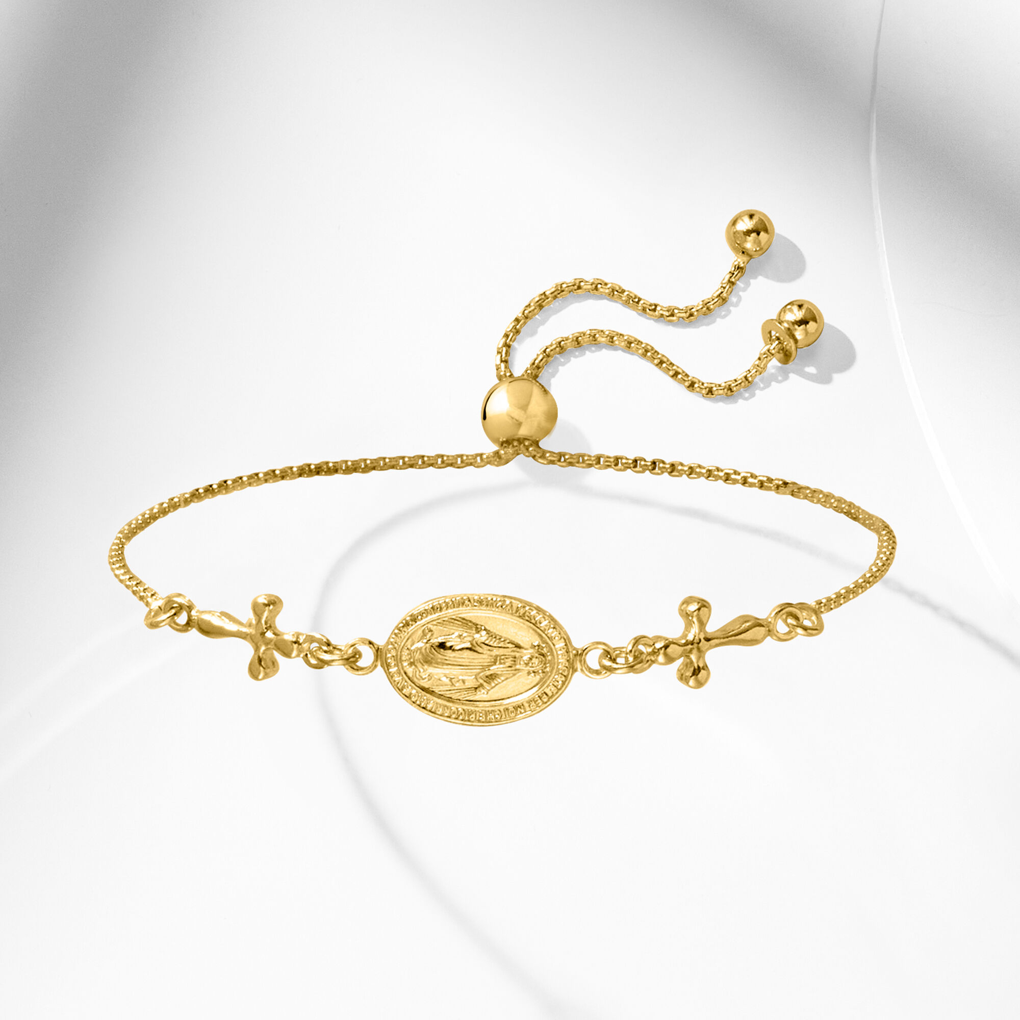 Italian 18kt Gold Over Sterling Miraculous Medal Bolo Bracelet