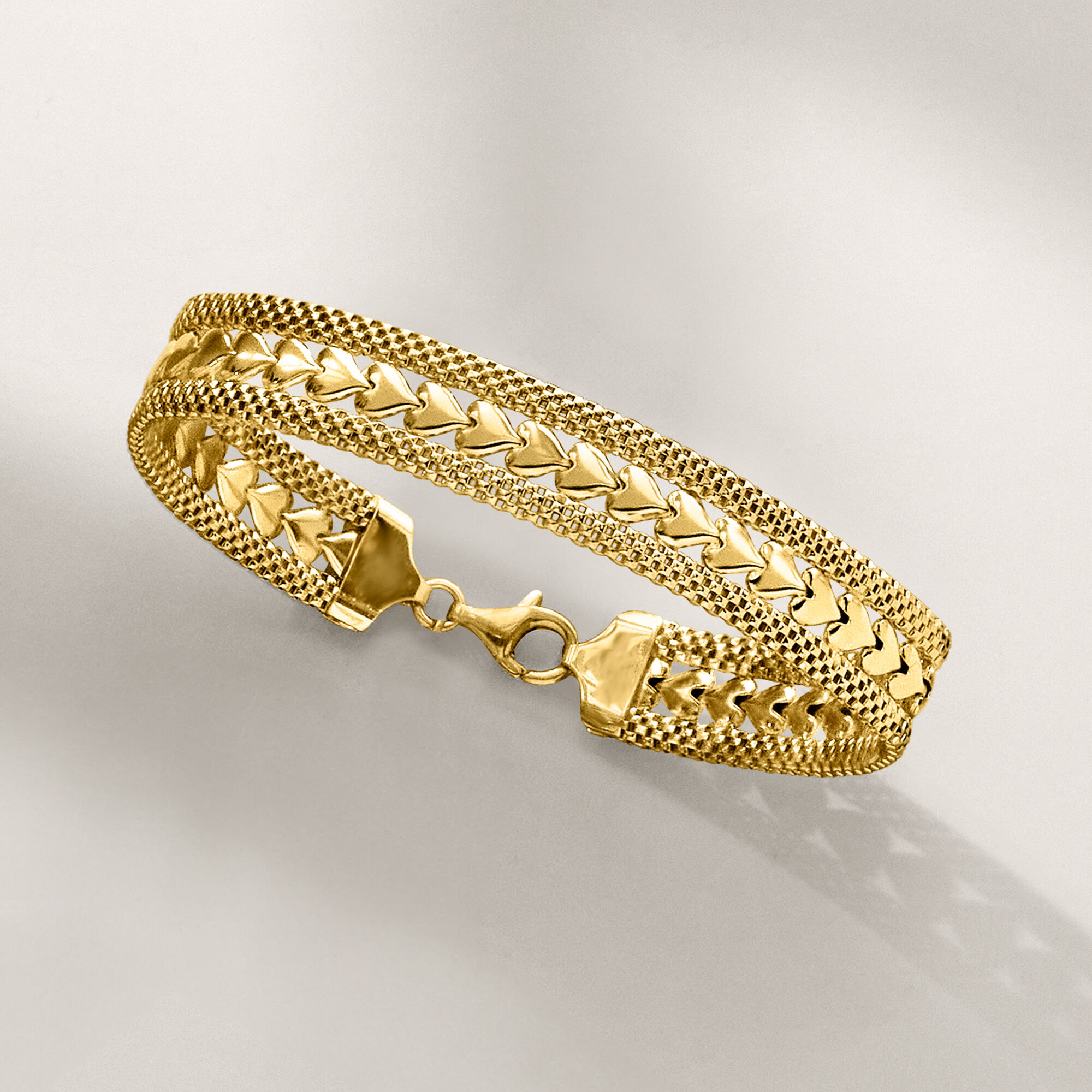 Italian 18kt Gold Over Sterling Silver Heart-Motif Bracelet