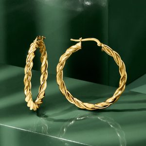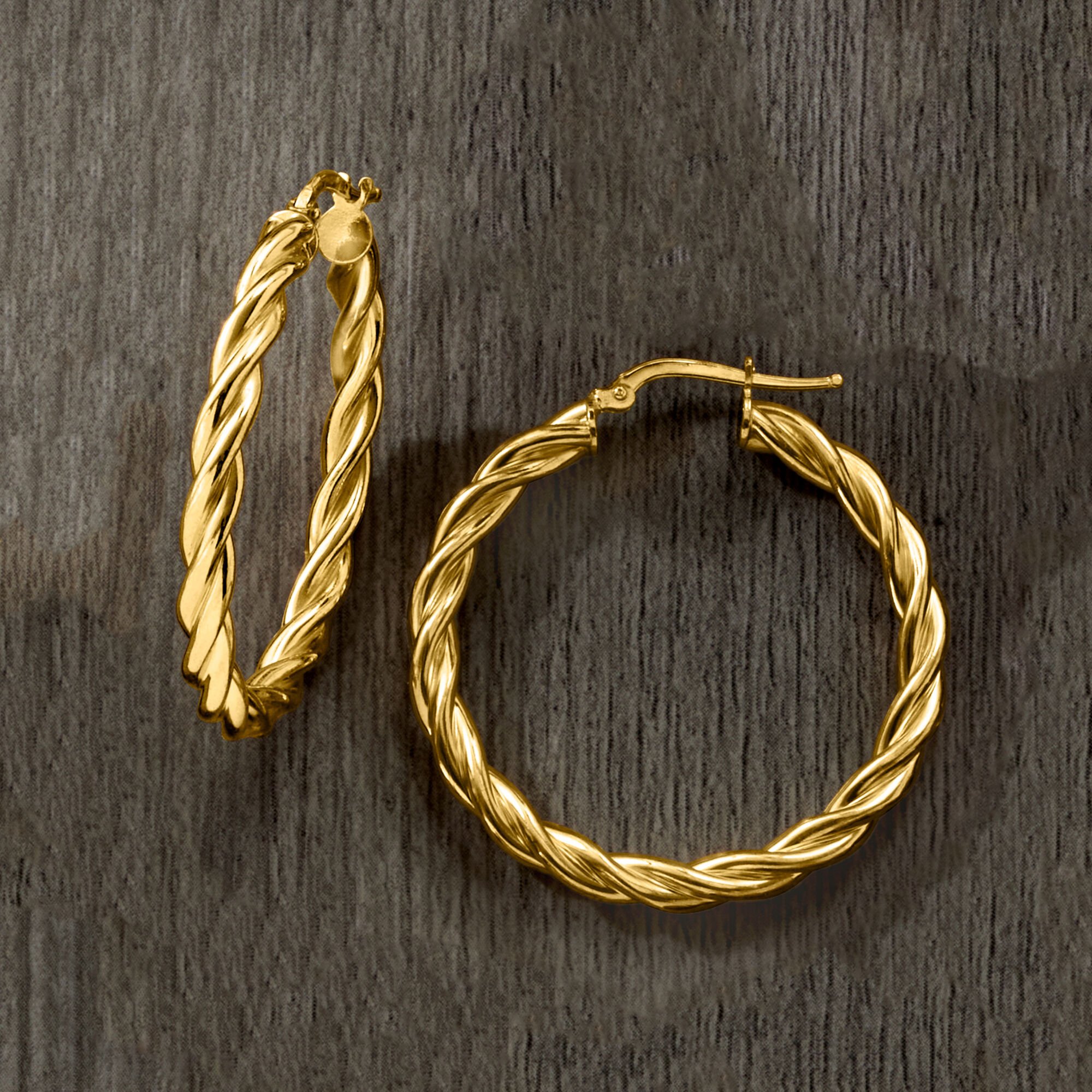 Italian 18kt Gold Over Sterling Twisted Hoop Earrings. 1 1/2″