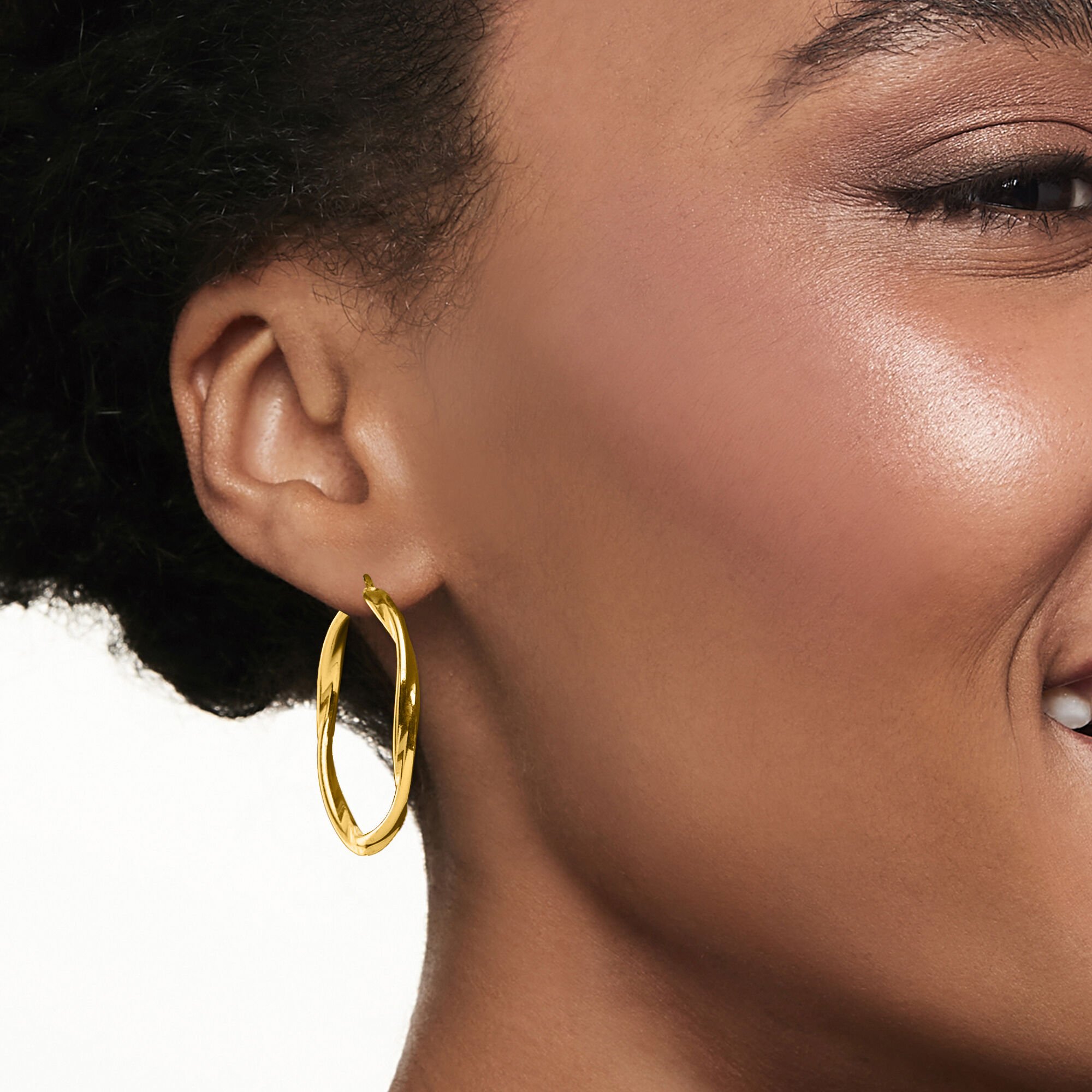 Italian 18kt Gold Over Sterling Twisted Hoop Earrings. 1 3/8″
