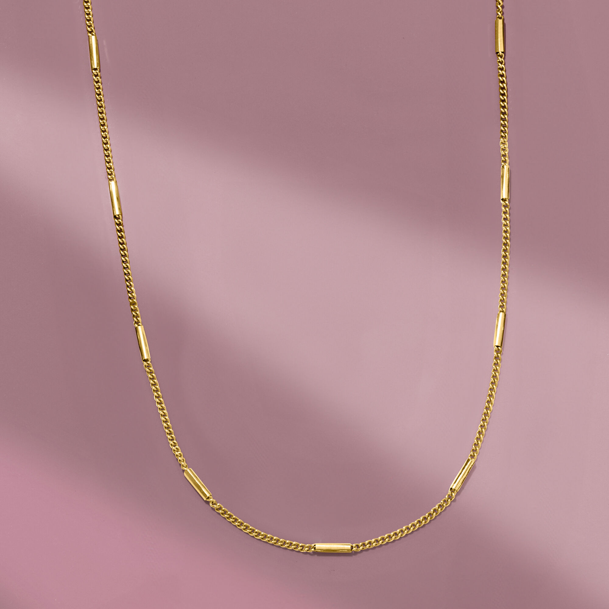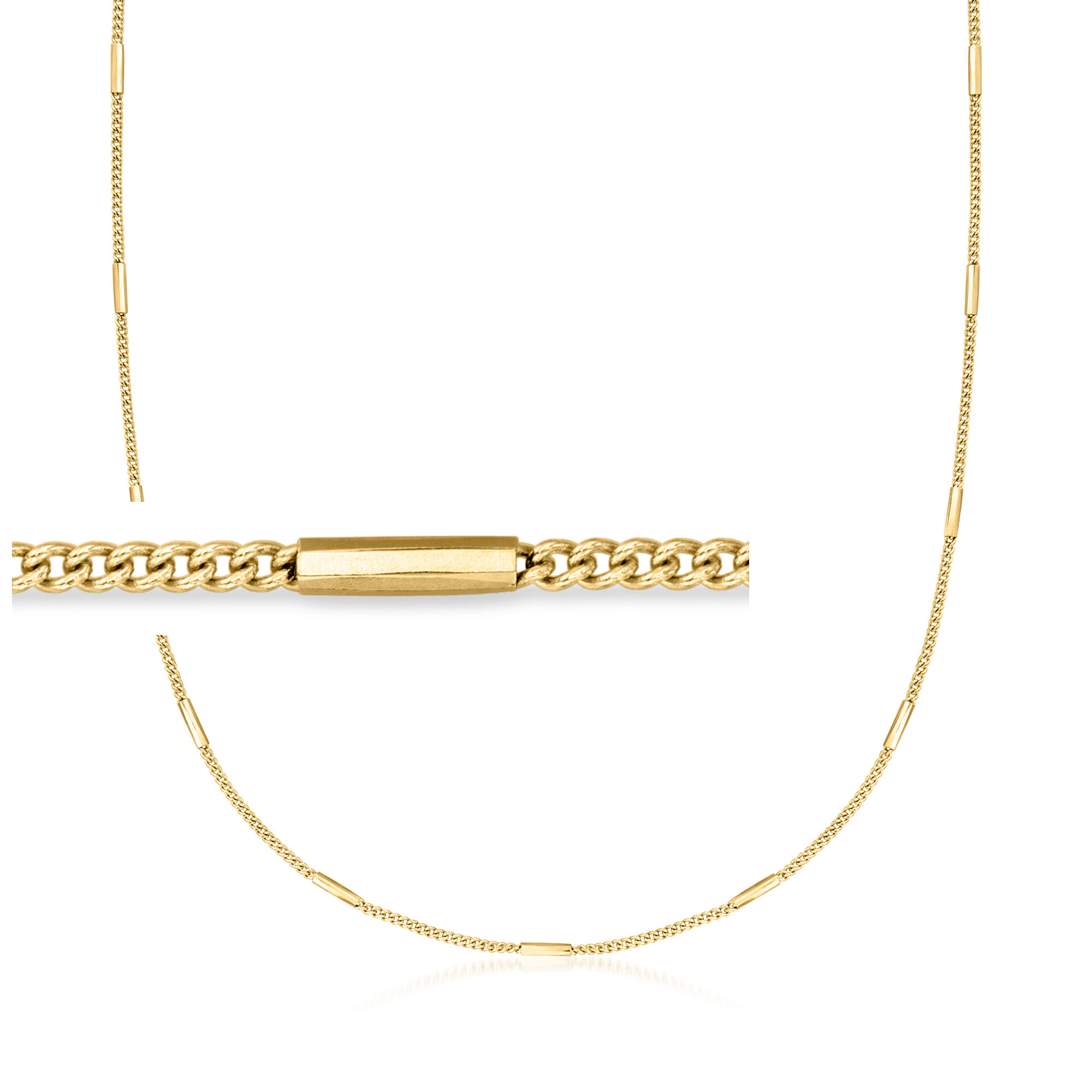 Italian 18kt Gold Vermeil Bar and Curb-Link Station Necklace. 16″